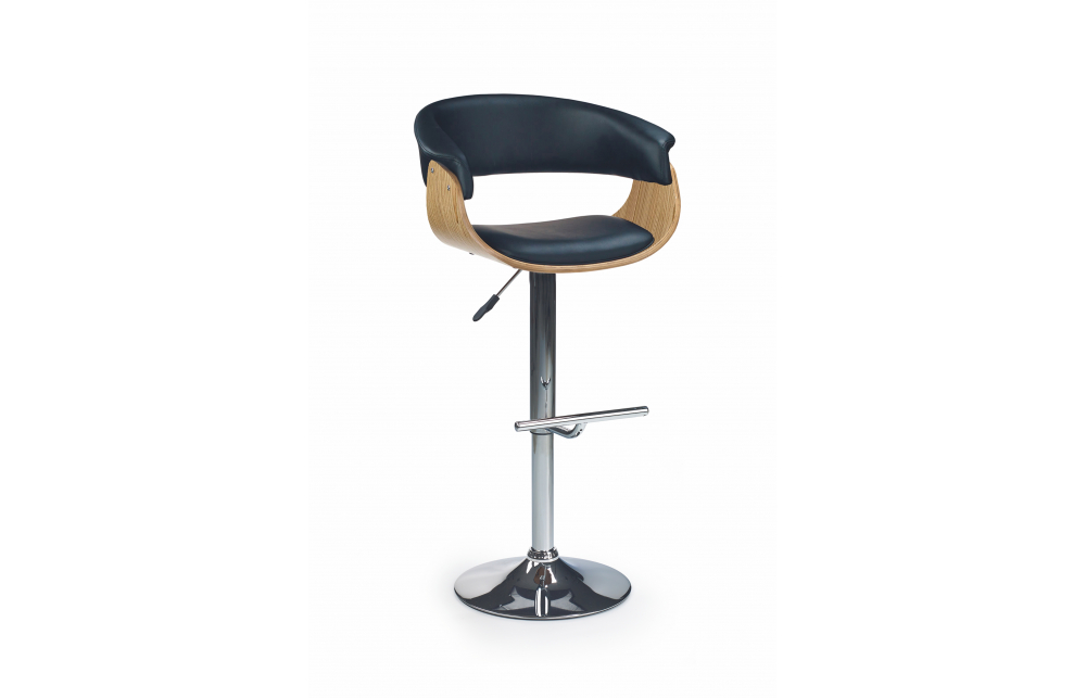 Размеры: 59/46/90÷112 см, материал: хромированная сталь / гнутая фанера / экокожа, цвет: дерево - светлый дуб, экокожа - черный