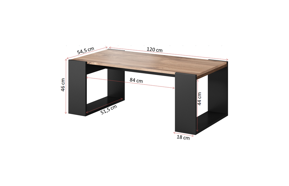 Размеры h/w/d- 46cm/120cm/54,5cm материал: верх: матовая ламинированная ДСП, 16 мм ножки: матовая ламинированная ДСП, 16 мм