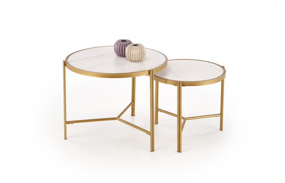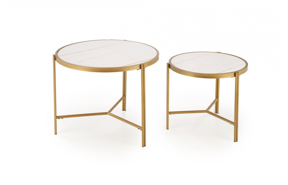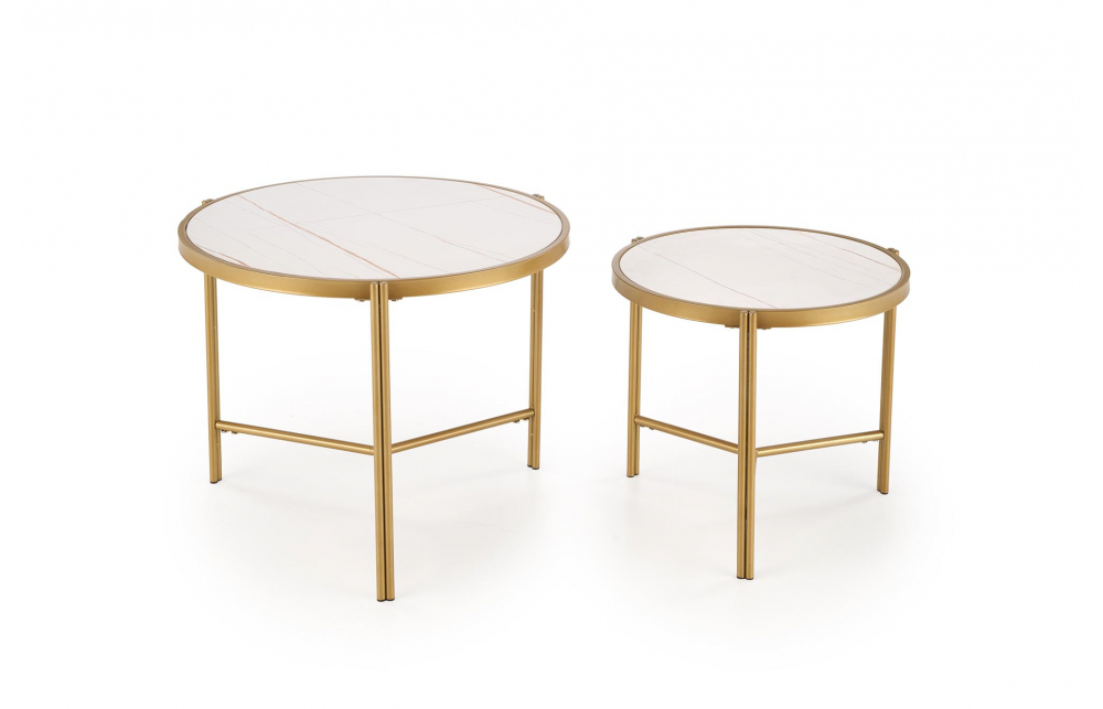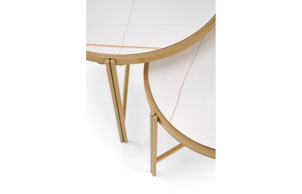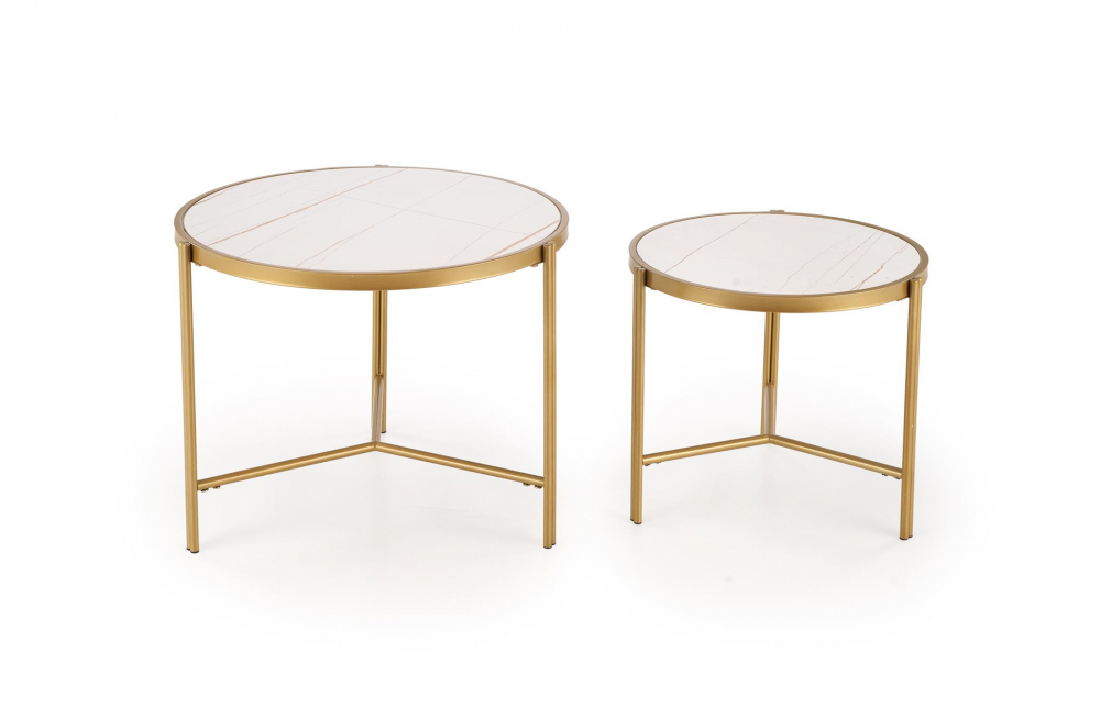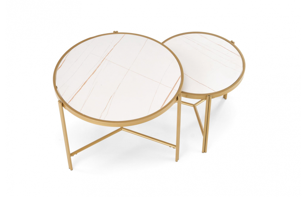 Набор из двух журнальных столиков FATIMA, белый мрамор/золото