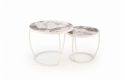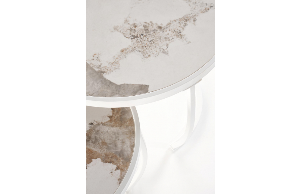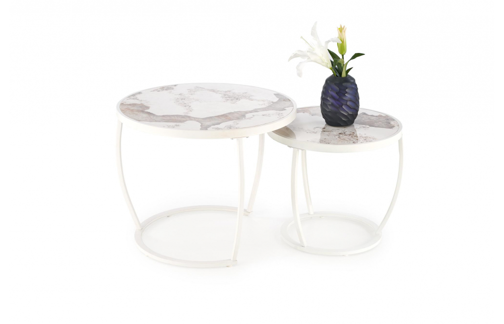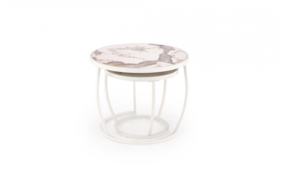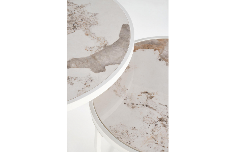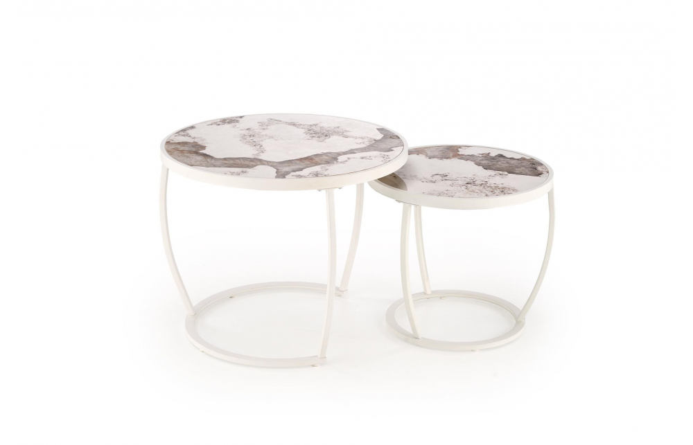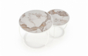 INES комплект из двух журнальных столиков, бежевый мрамор / белый