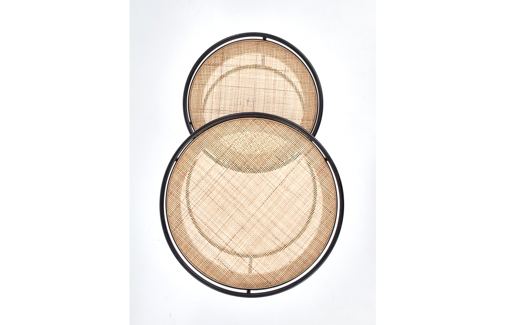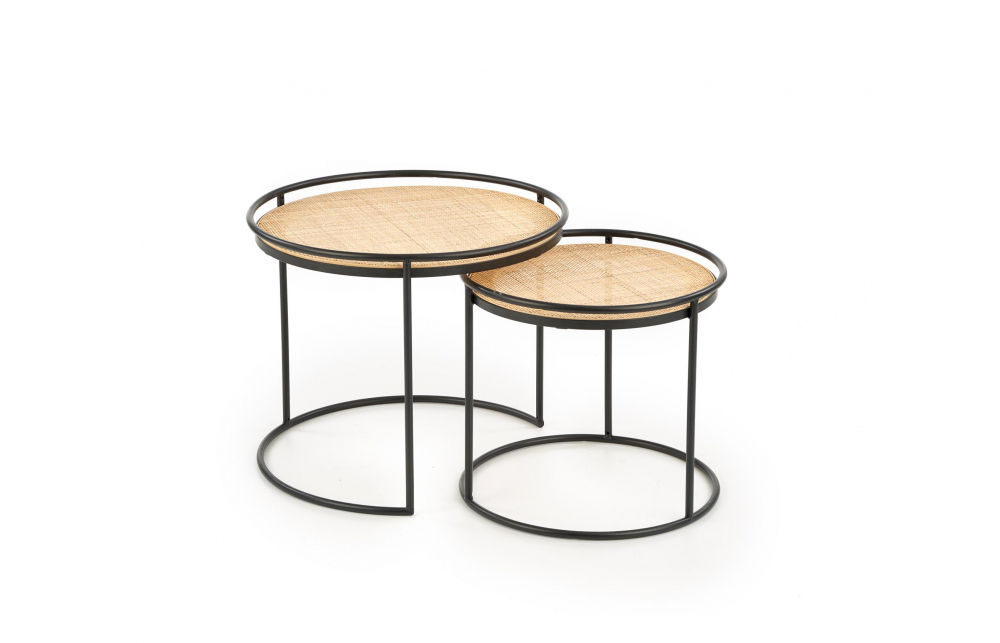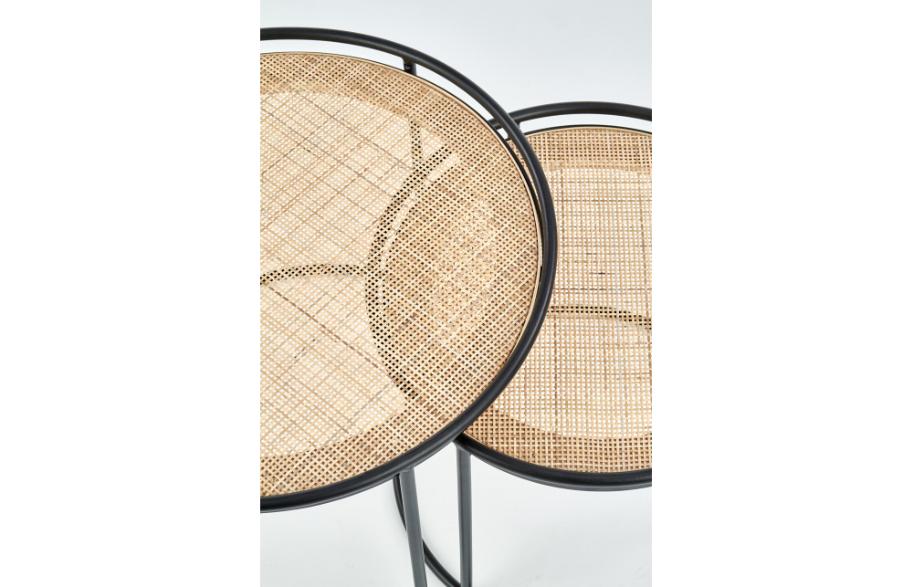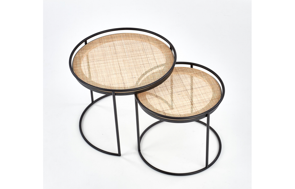 Размеры: 51/42, 41/37 см, материал: натуральный ротанг / сталь с порошковым покрытием, цвет: натуральный / черный