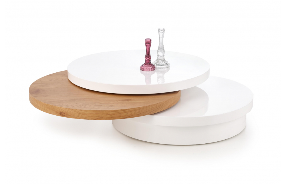 Размеры: fi80/27 см, материал: лакированный МДФ / ламинированный МДФ, цвет: белый / золотой дуб