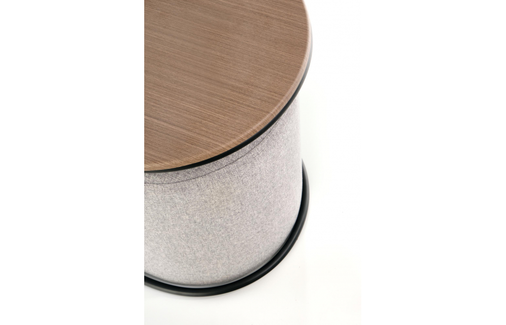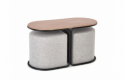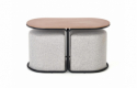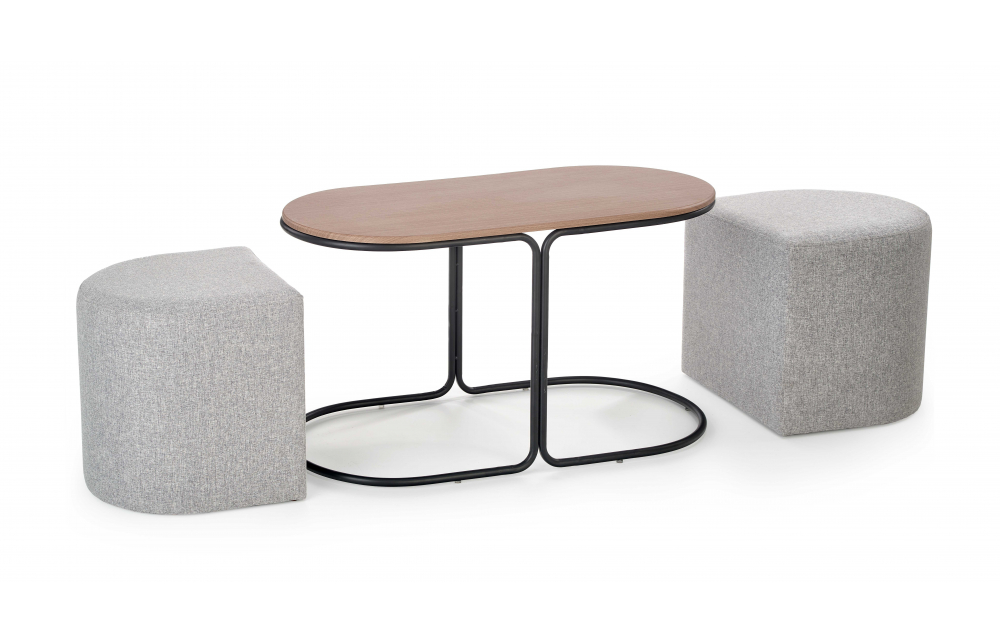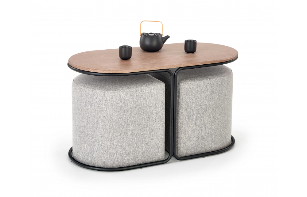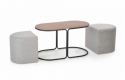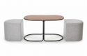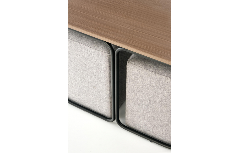 PAMPA, журнальный столик с пуфами, столешница: орех, ножки: черный, пуф: серый