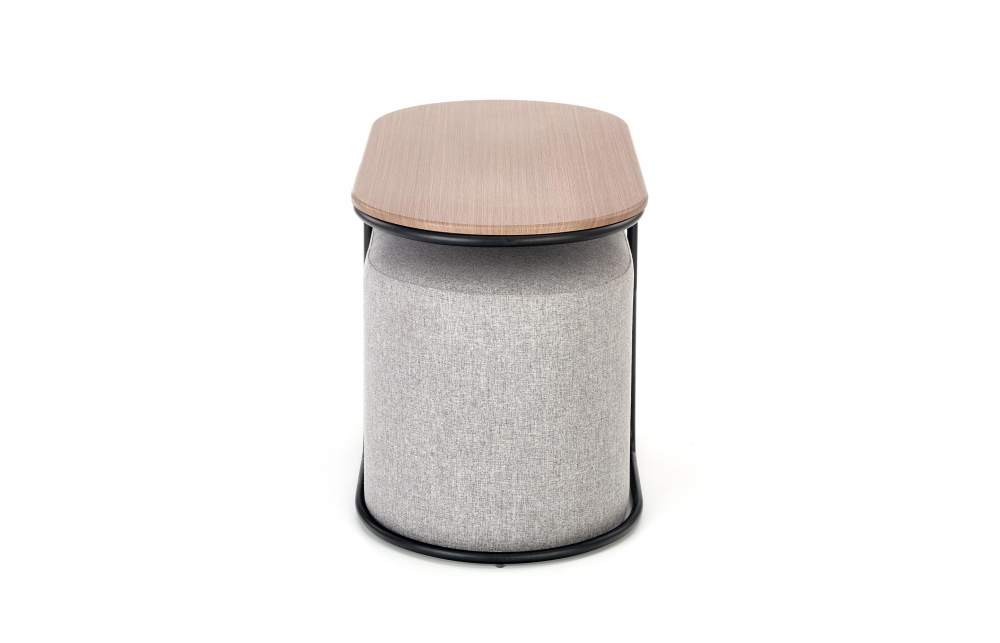 размер: 88/43/49 см, журнальный столик с пуфами, материал: ламинированный МДФ / сталь с порошковым покрытием / ткань, цвет: дуб ремесленный / черный матовый