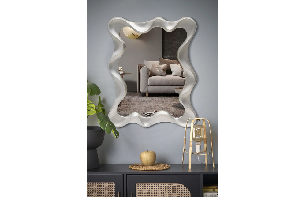 настенное зеркало, Размеры: 90/70/5 см, материал: рама - пластик / основание - плита МДФ / зеркало, цвет: античное серебро