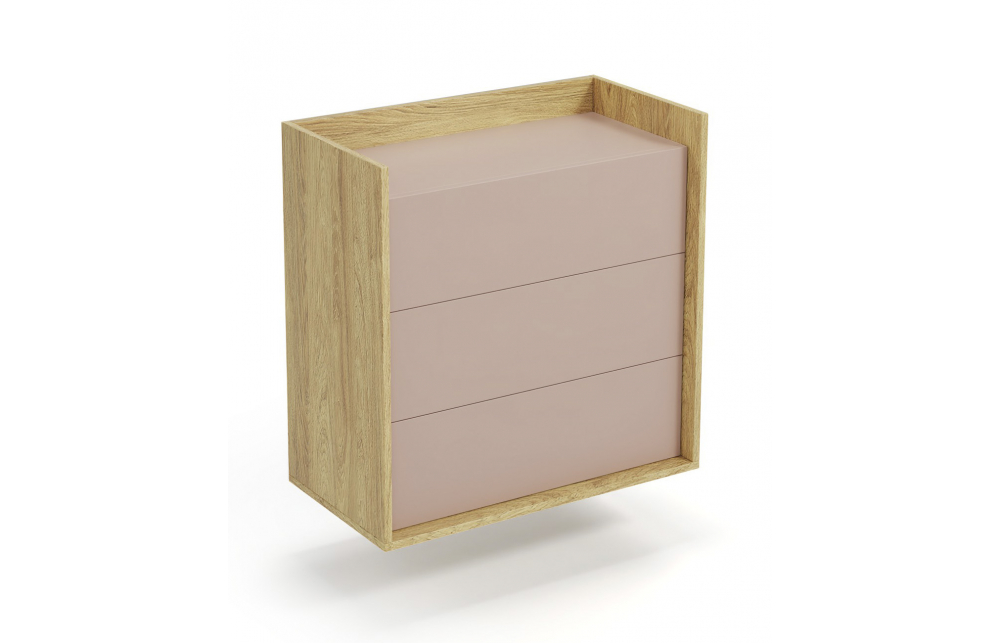 Размеры: 78/41/83 см, материал: ламинированная ДСП, кромки ABS, механизм push-clik, цвет: дуб хикора/розовый