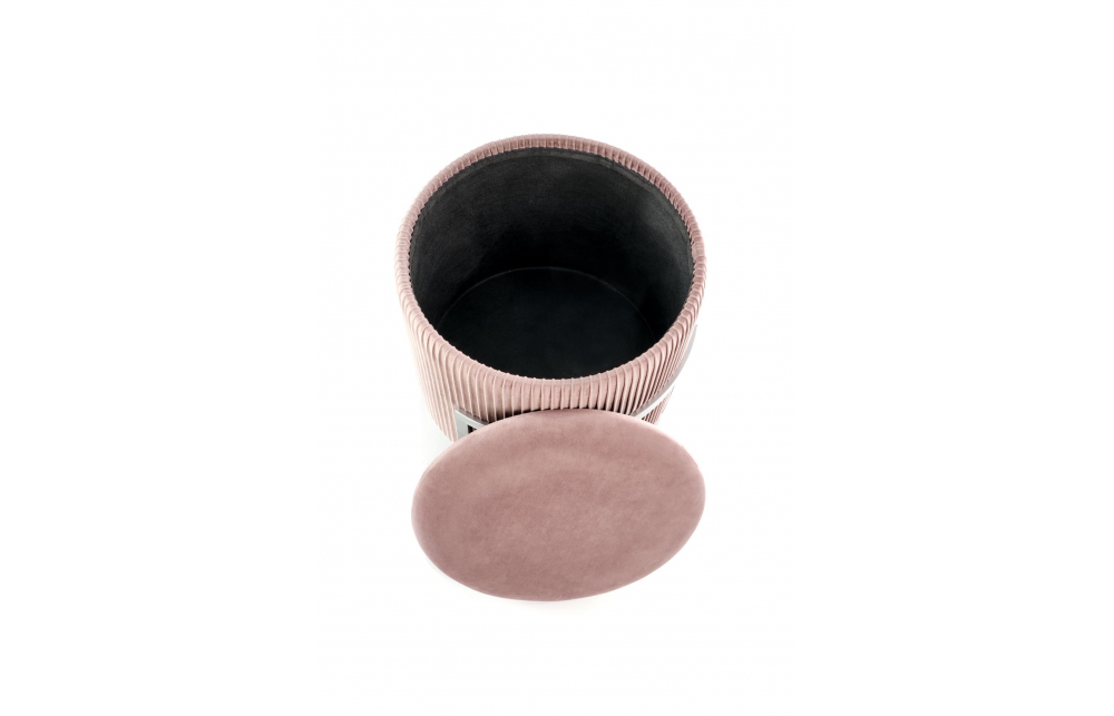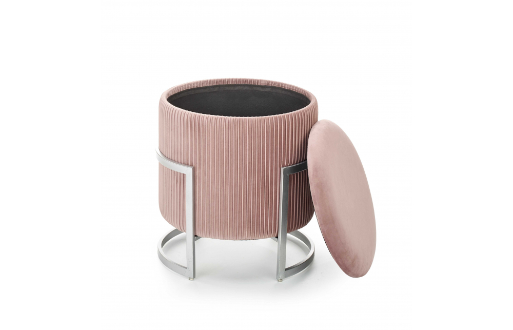 Размеры: fi40/46 см, пуф с функцией хранения, матариалы: бархатная ткань / сталь с порошковым покрытием, цвета: светло-розовый