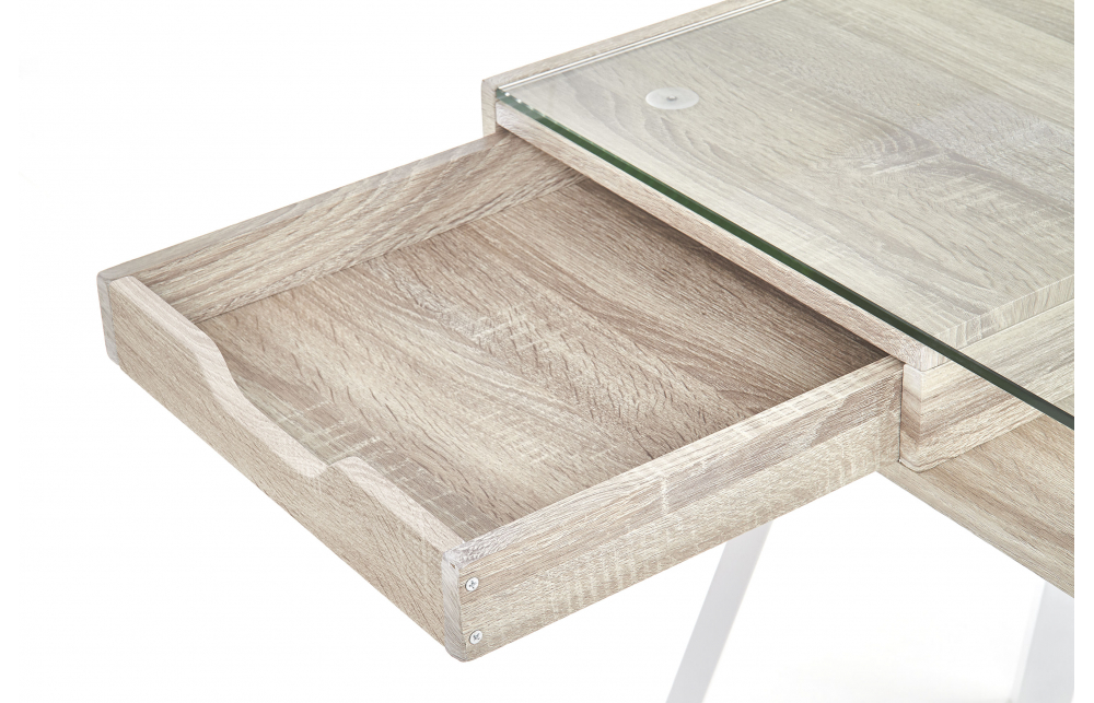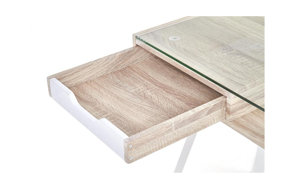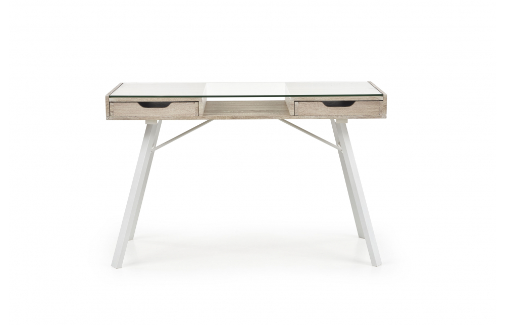 Размеры: 120/60/76 см, материал: ламинированный МДФ / сталь с порошковым покрытием / стекло, цвет: дуб сонома / белый