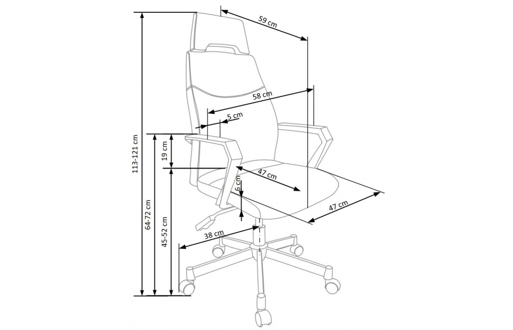 Механизм TILT, Размеры: 58/59/113-121/45-52 см, материал: ткань, цвет: серый / черный