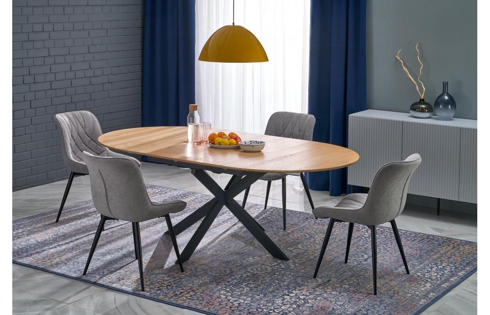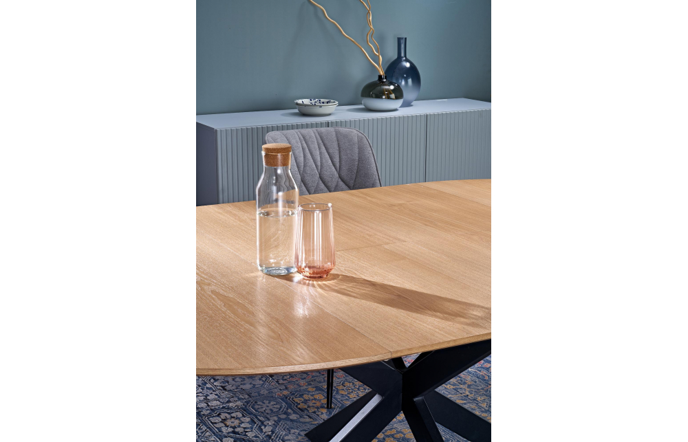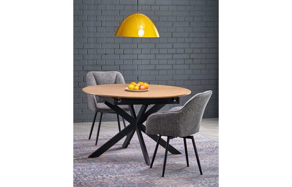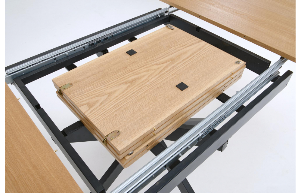 Размеры: 120-200/120/75 см, приставной стол, материал: МДФ + натуральный шпон / сталь с порошковым покрытием цвет: столешница - натуральный, ножки - черный