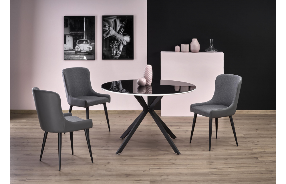 Размеры: fi120/76 см, материал: стекло / лакированный МДФ / сталь с порошковым покрытием, цвет: верх - черный / белый, ножки - черные