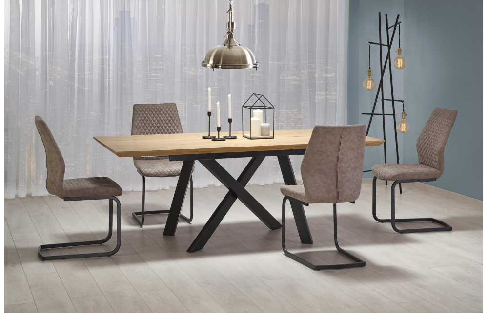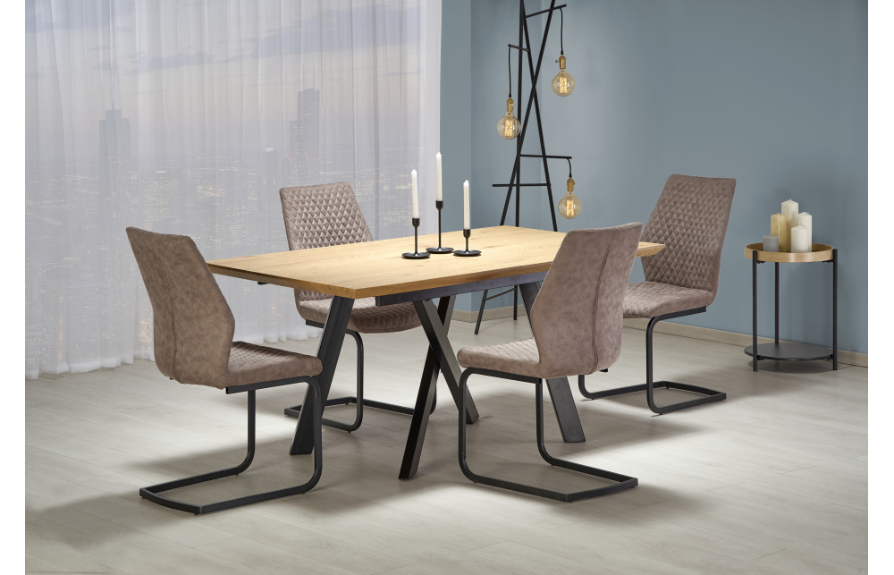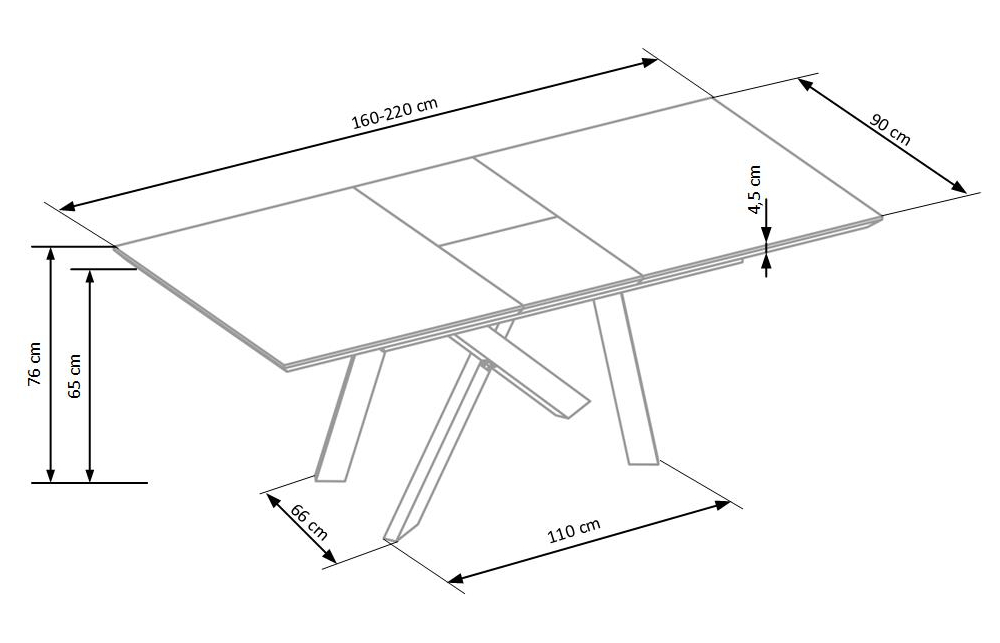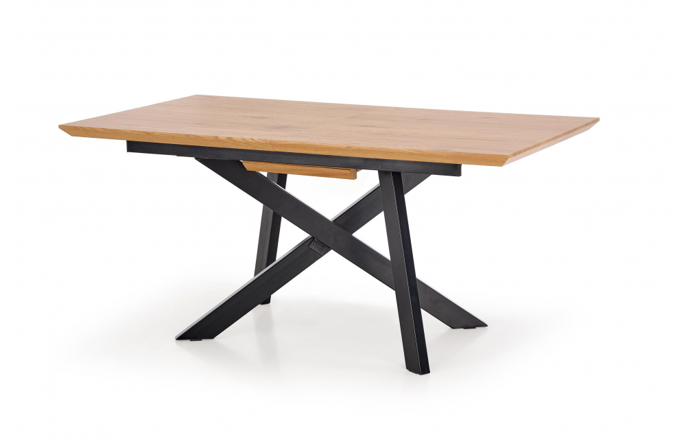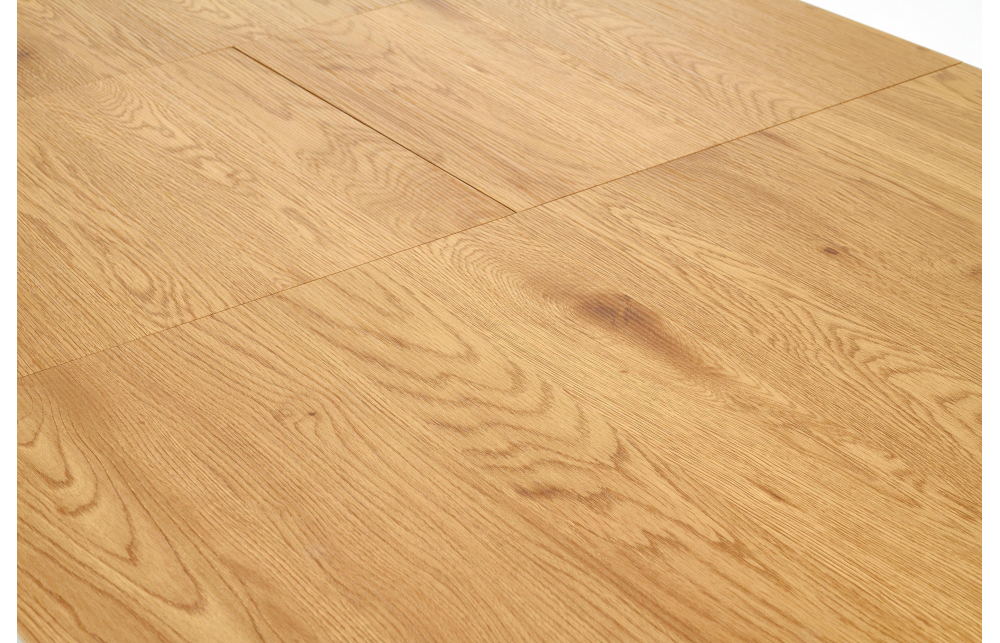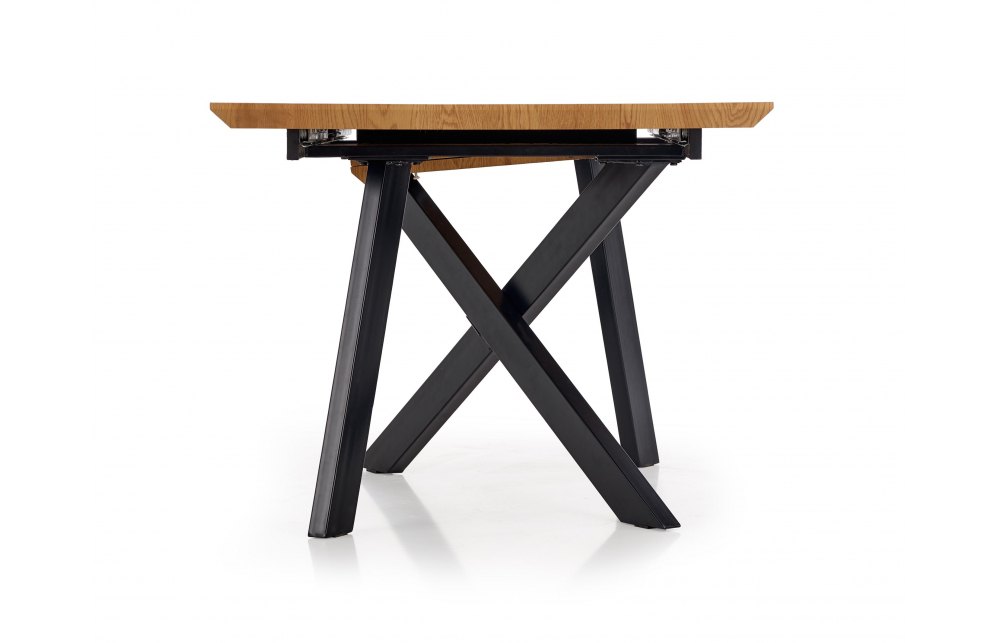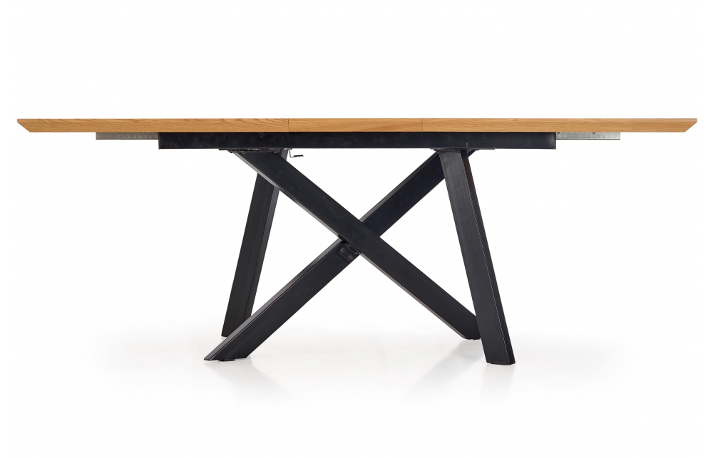 приставной стол, Размеры: 160-200/90/76 см, материал: ламинированный МДФ / сталь с порошковым покрытием, цвет: золотой дуб / черный После пролития жидкости на столешницу немедленно вытрите ее насухо, чтобы избежать впитывания воды материалом столешницы.