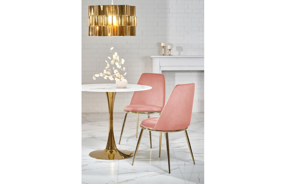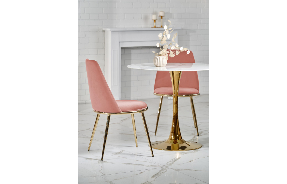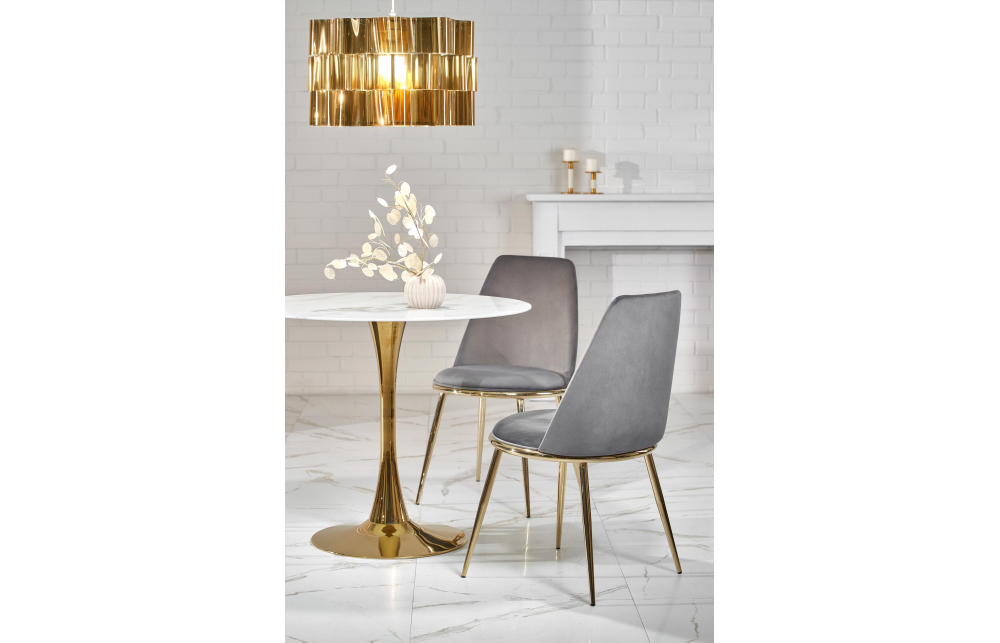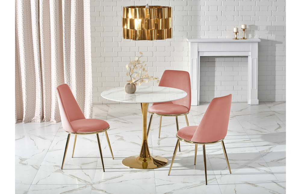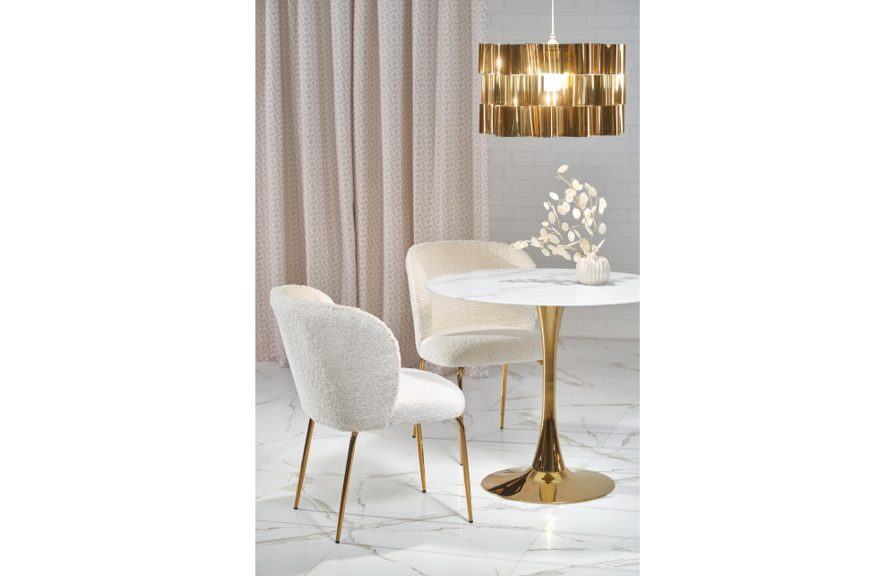 Размеры: fi90/75 см, материал: гкл, цвет: столешница - белый мрамор, ножки - золото