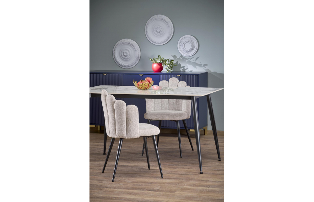 Стол EMILIO 120, цвет: столешница - белый мрамор, ножки - черный