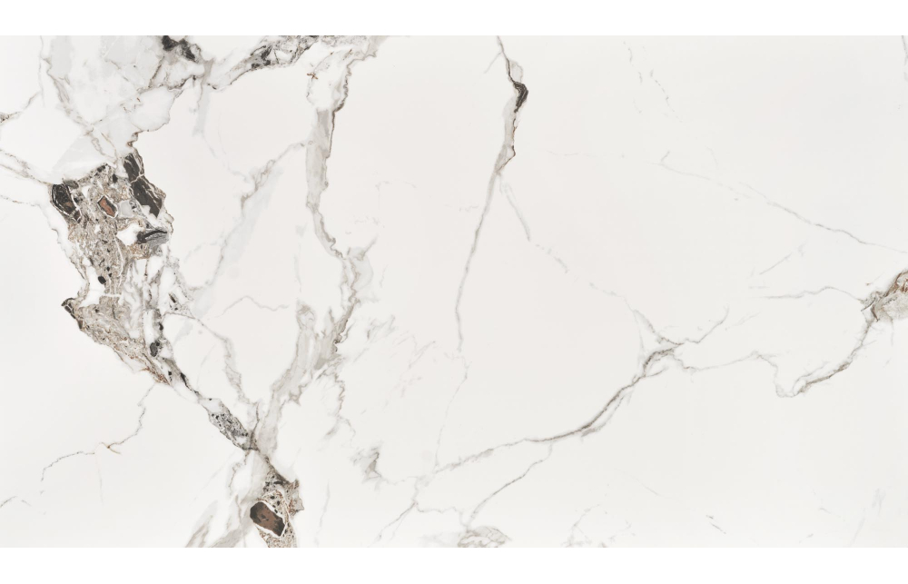 Размеры: 120/70/76/100 см; материал: спеченный камень / сталь с порошковым покрытием, цвет: столешница - белый мрамор, ножки - черный