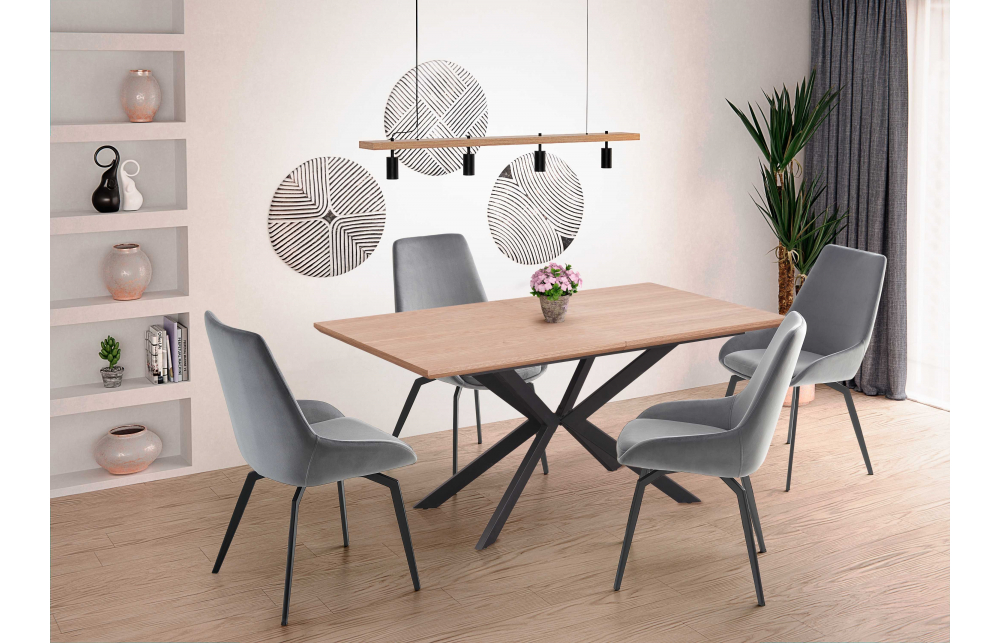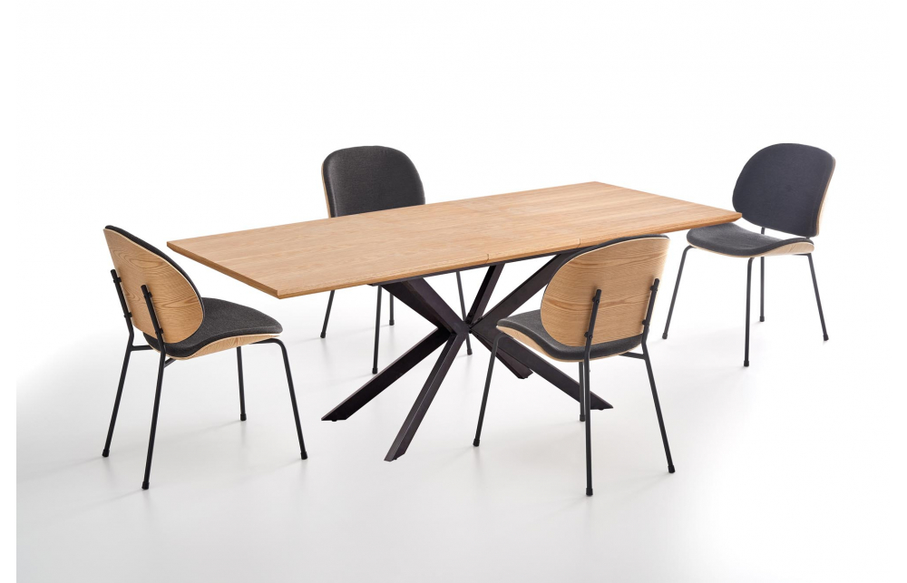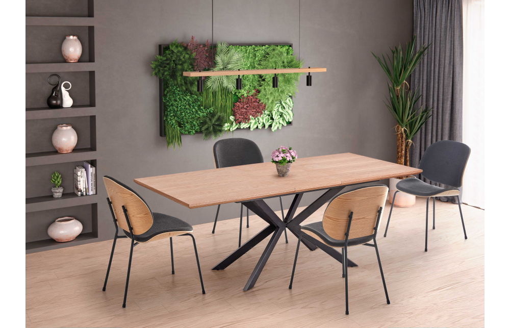 Размеры: 160-200/90/76 см, приставной стол, материал: МДФ и натуральный шпон / сталь с порошковым покрытием, цвет: столешница - натуральный дуб, ножки - черный