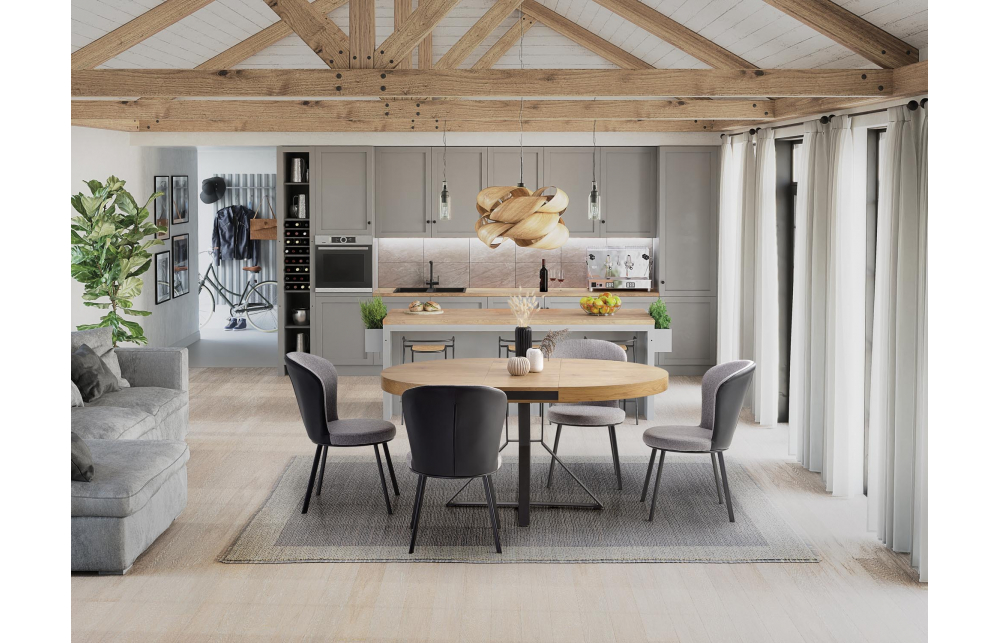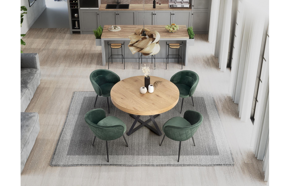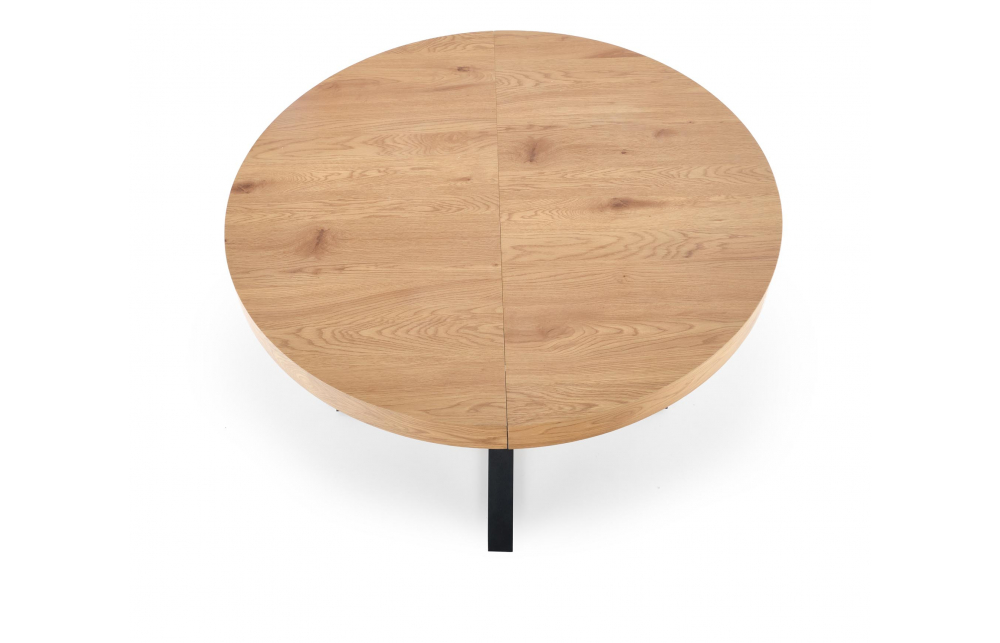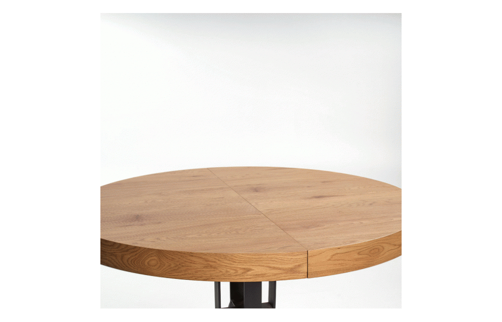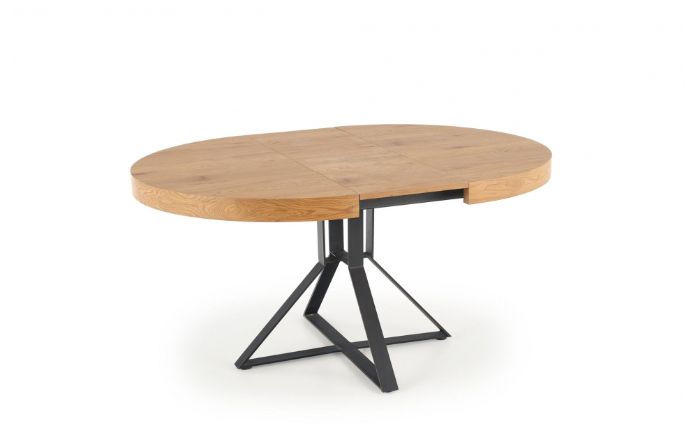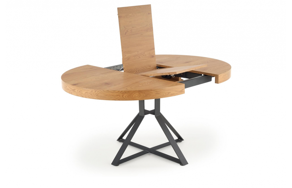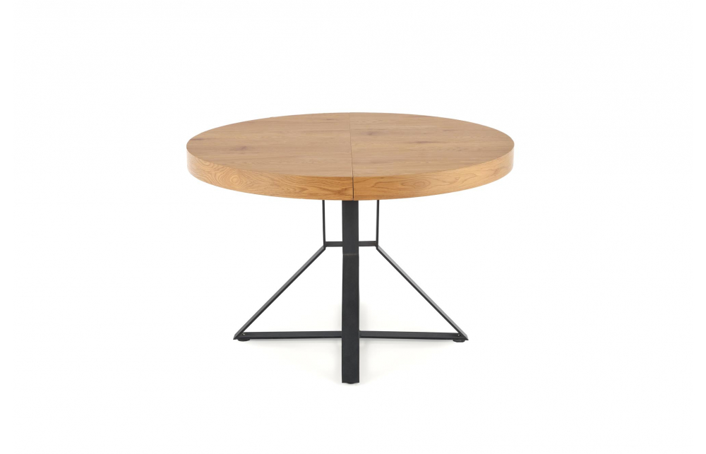 приставной стол, Размеры: 120-160/120/76 см, материал: ламинированный МДФ / сталь с порошковым покрытием, цвет: столешница - золотой дуб, ножки - черные После пролития жидкости на столешницу немедленно вытрите ее насухо, чтобы избежать впитывания воды материалом столешницы.