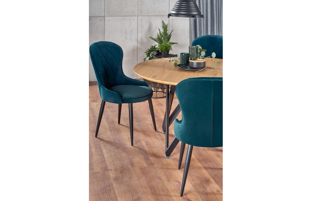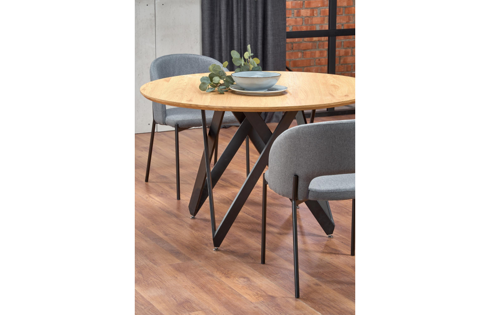 Размеры: 120/75 см, материал: ламинированный МДФ / сталь с порошковым покрытием, цвет: столешница - золотой дуб, ножки - черные