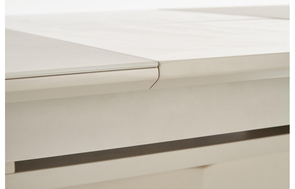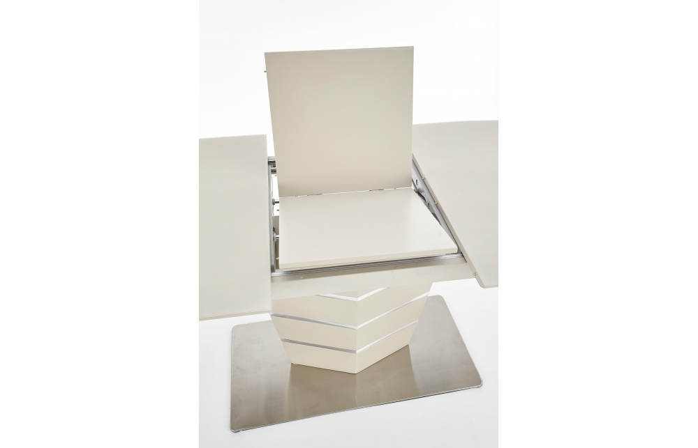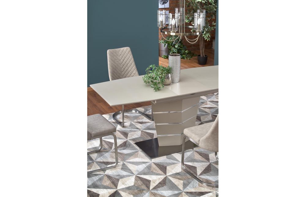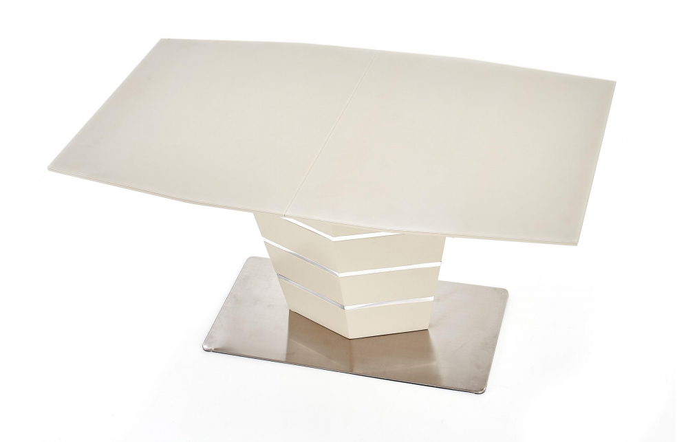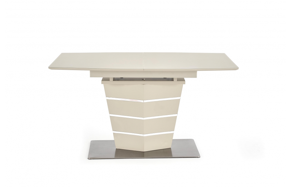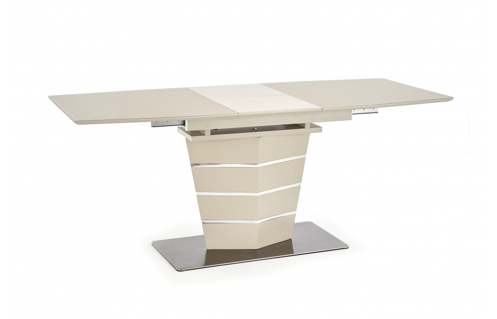 Размеры: 140÷180/80/76 см, выдвижной стол, материал: стекло / лакированный МДФ / нержавеющая сталь, цвет: шампань матовый