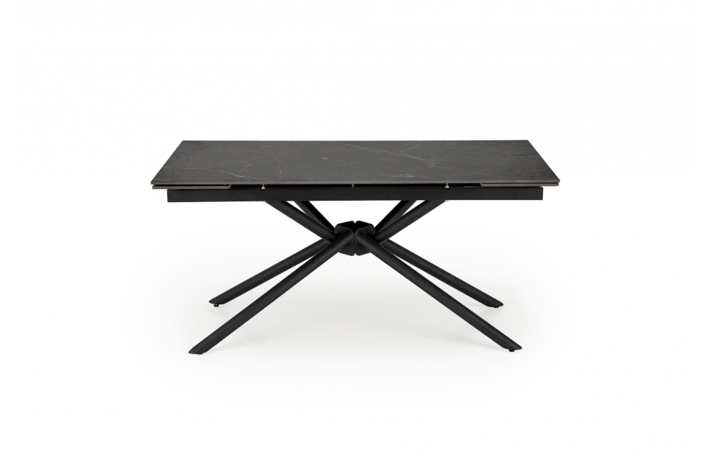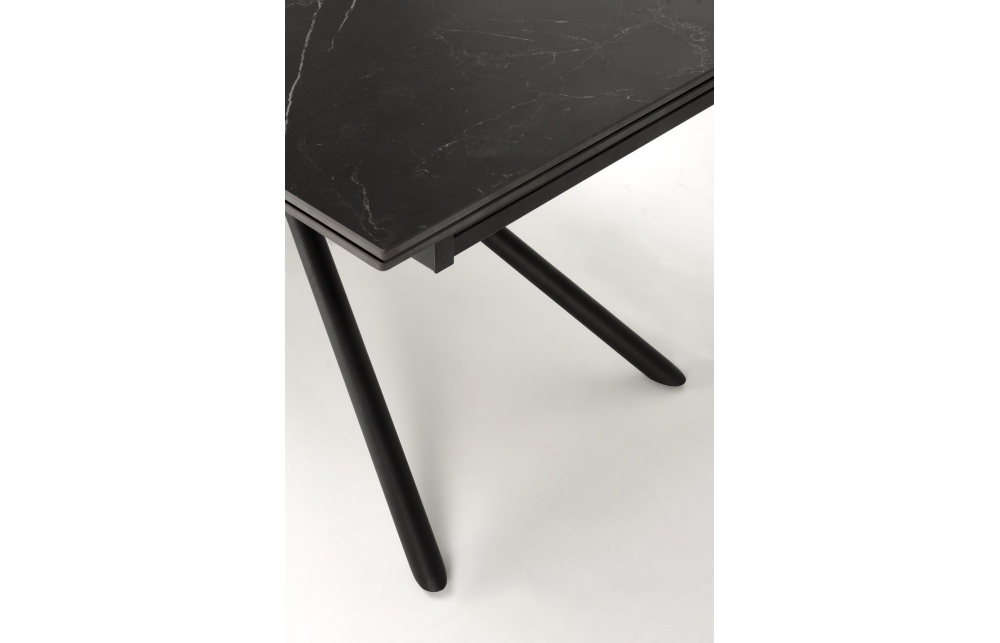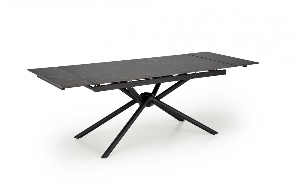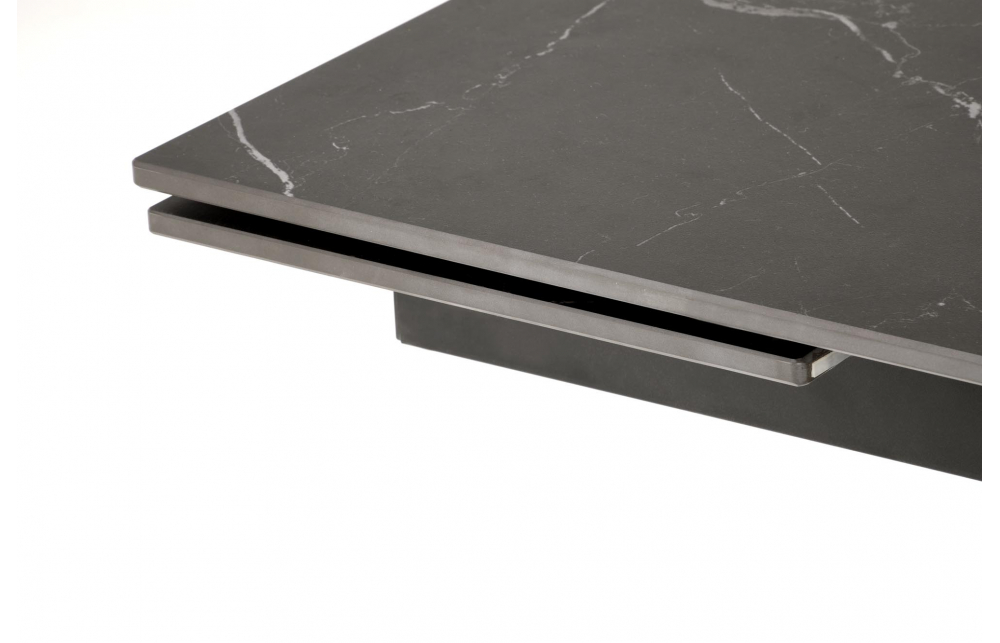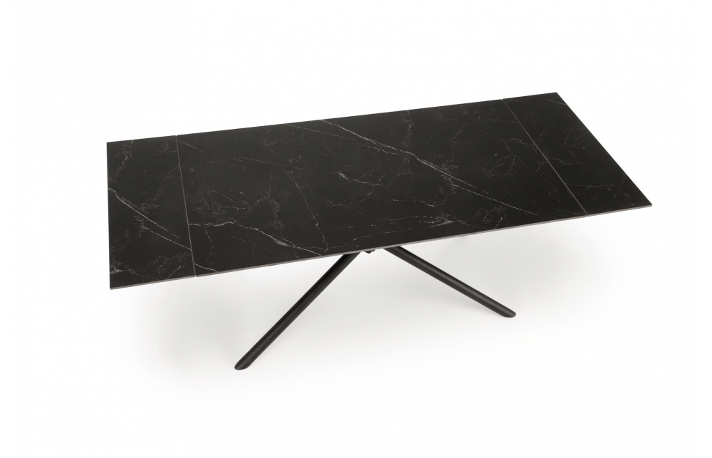 Размеры: 160-220/90/75/125 см; приставной стол, материал: спеченный камень / сталь с порошковым покрытием, цвет: столешница - черный мрамор, ножки - черные