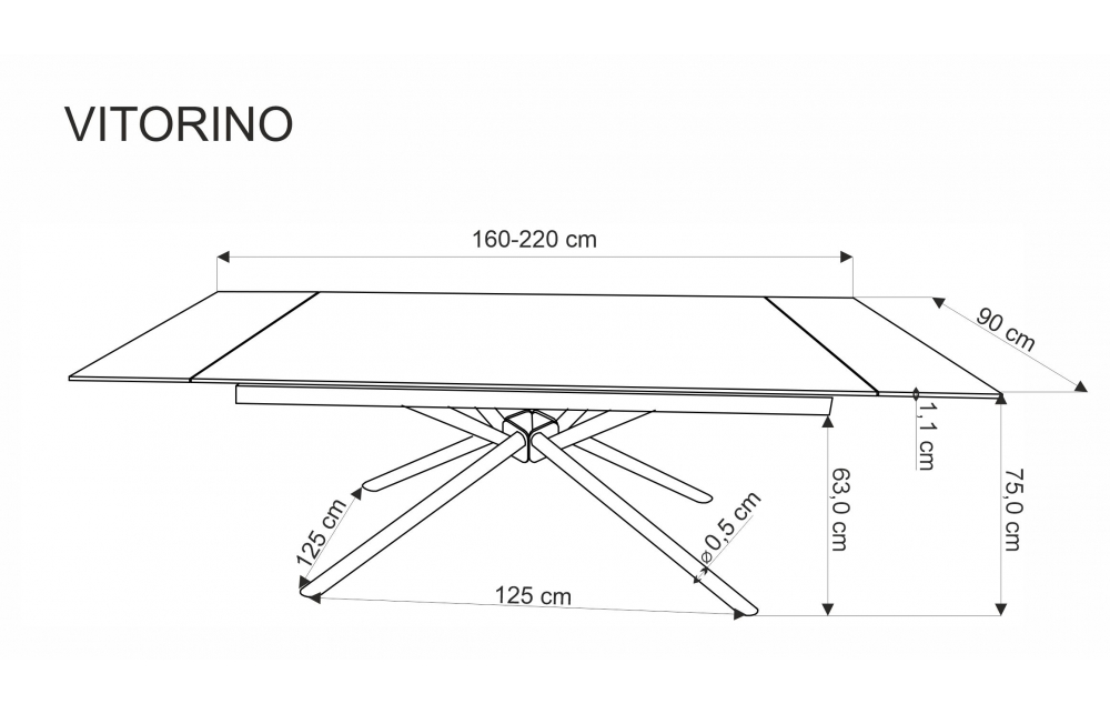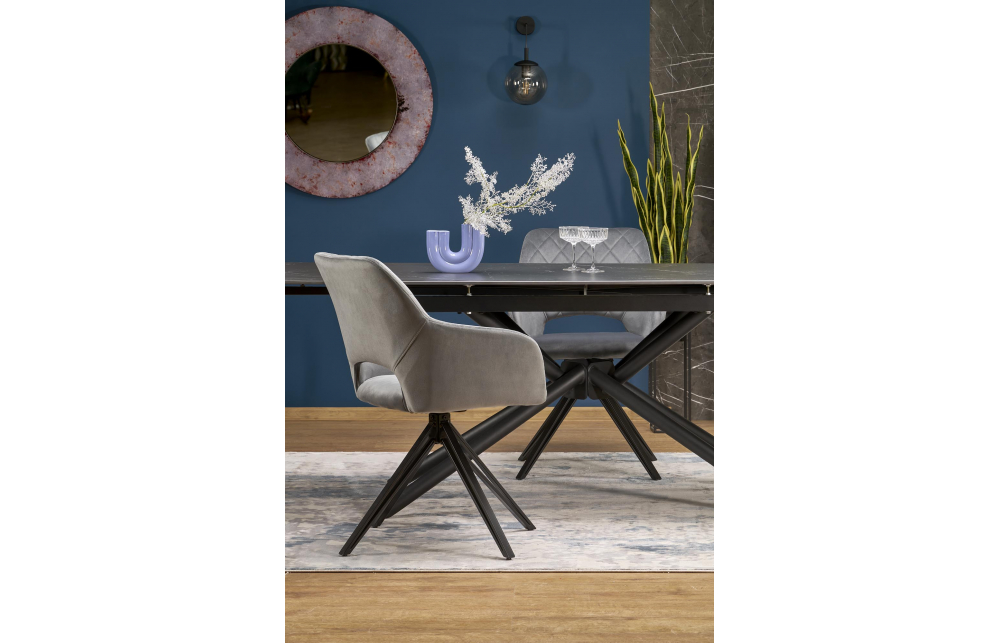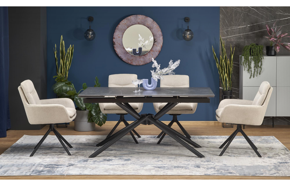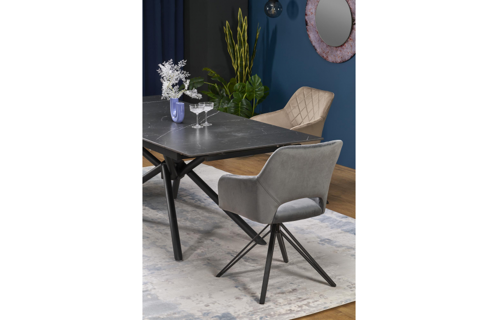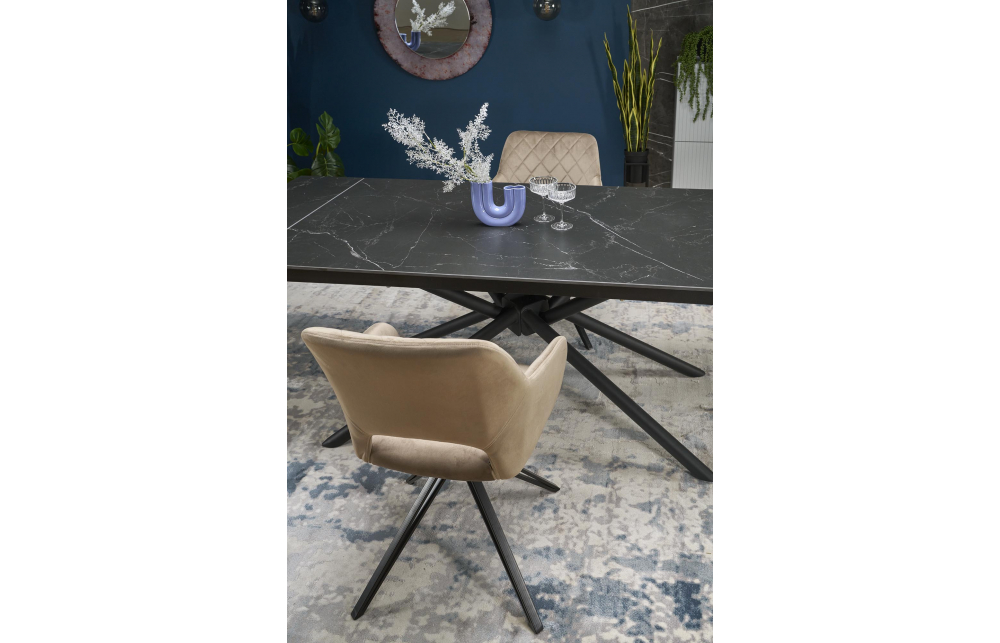 Размеры: 160-220/90/75/125 см; приставной стол, материал: спеченный камень / сталь с порошковым покрытием, цвет: столешница - черный мрамор, ножки - черные