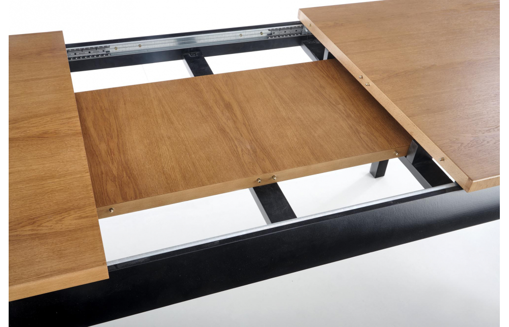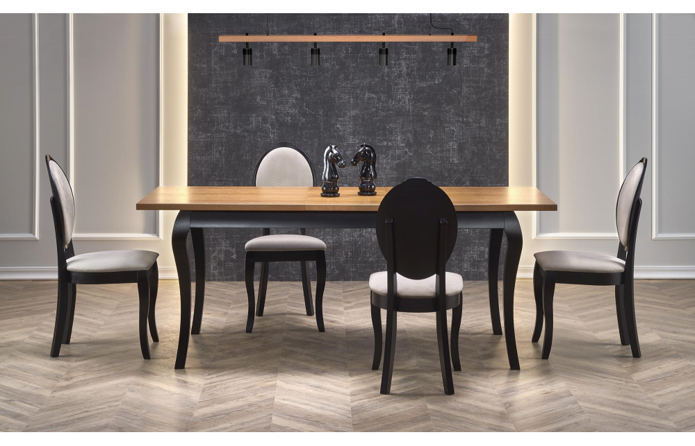 приставной стол, Размеры: 160-240/90/76 см, материал: столешница - мебельный щит и флюгер из натурального дуба, ножки - массив бука, цвет: столешница - темный дуб, ножки - черный
