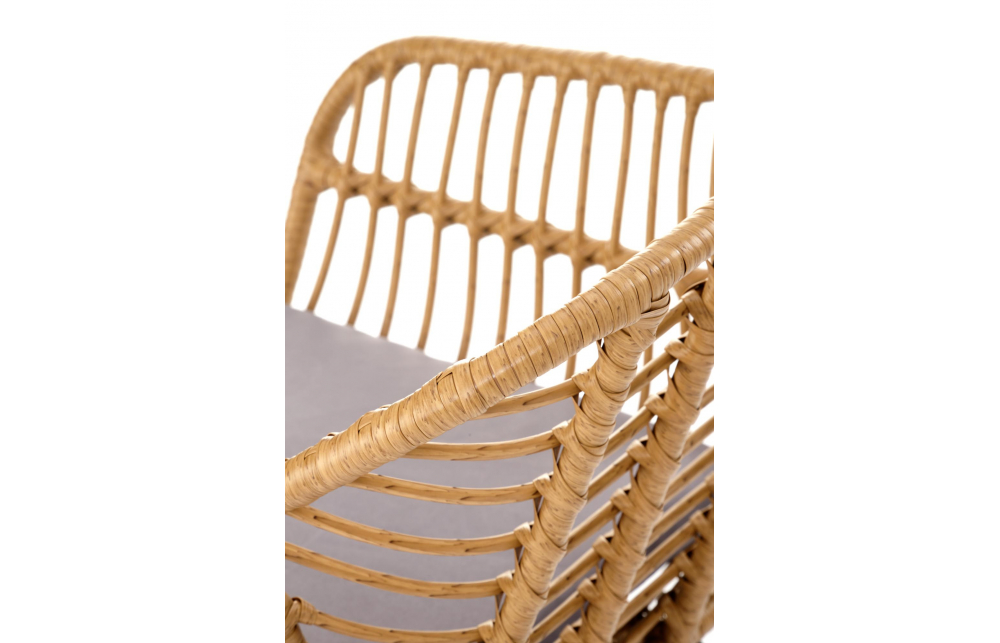 Размеры: 55/58/77/42 см, материал: синтетический ротанг / ткань / сталь с порошковым покрытием, цвет: натуральный / серый