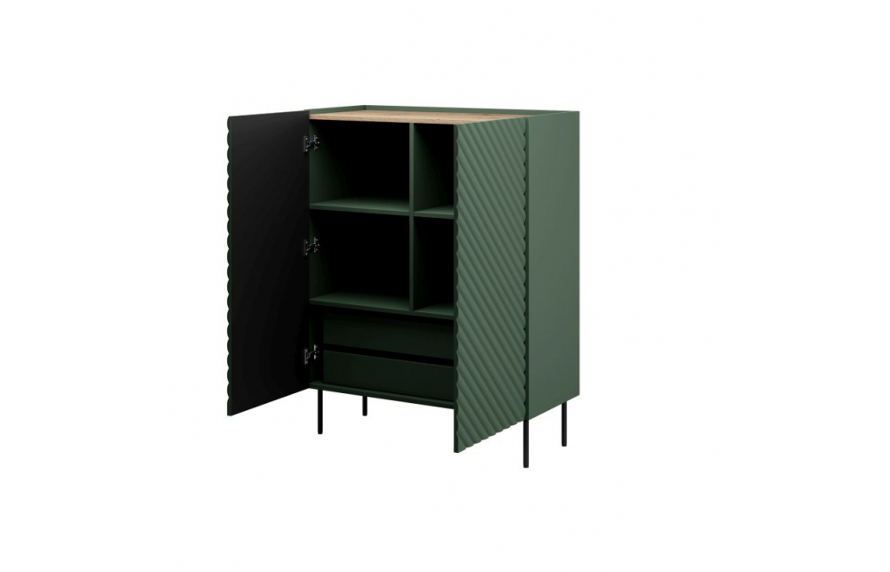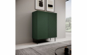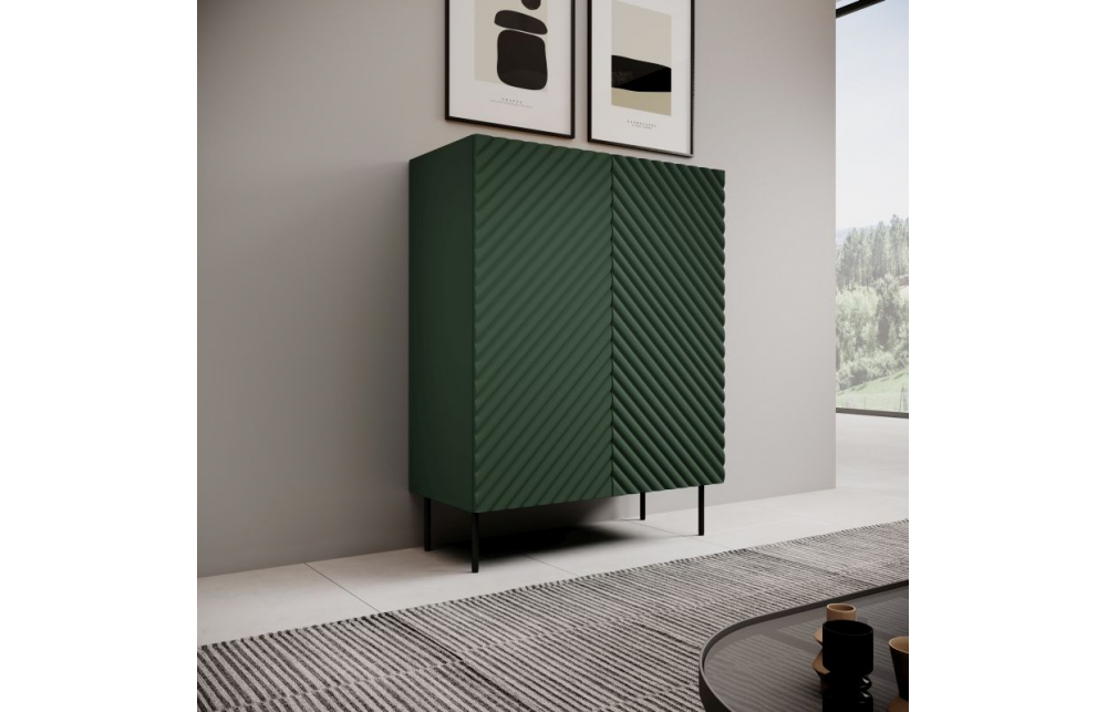 Размеры: h/w/d- 127cm/98cm/45cm Корпус: ламинированная ДСП 16 мм Фасады: фрезерованный МДФ 18 мм+фольга PCV верхний бортик: ламинированная ДСП 16 мм задняя стенка: ДСП МДФ 3 мм Накладки: с мягкой обивкой Ножки: стальные высота 20 см без регулировки Ручка: передняя выступает над верхним ободом