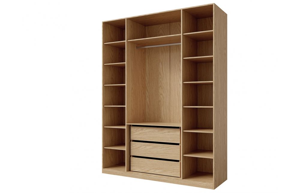 Sisukorrastajad: riiedetoru, riiulid, kolm sahtlit