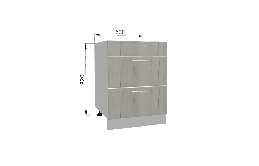 D3S60 Kapp kolme sahtliga 600х540х820 valge tamm kraft