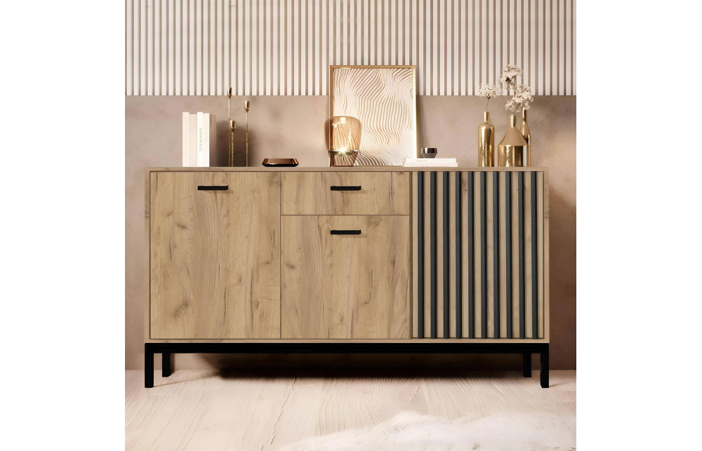 Suurus: 154/40/84 cm; materjal: lamineeritud puitlaastplaat / polüpropüleen, värvus: tammepuust kraft / must