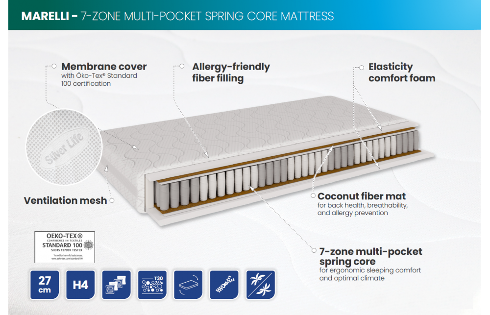 Madratsi tüüp: 7-tsooniline sõltumatu vedruplokk Pocket