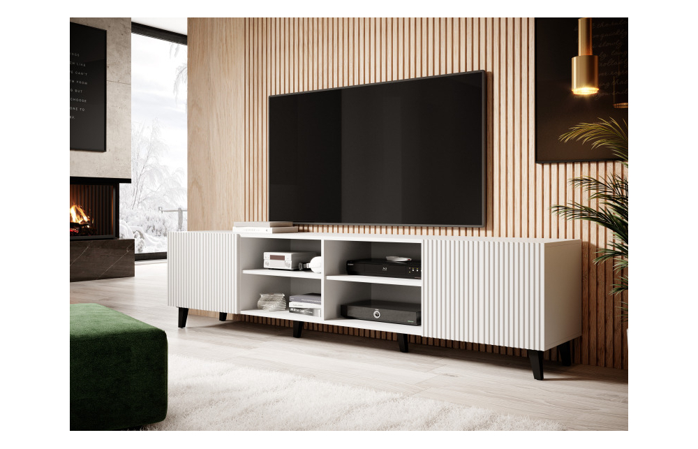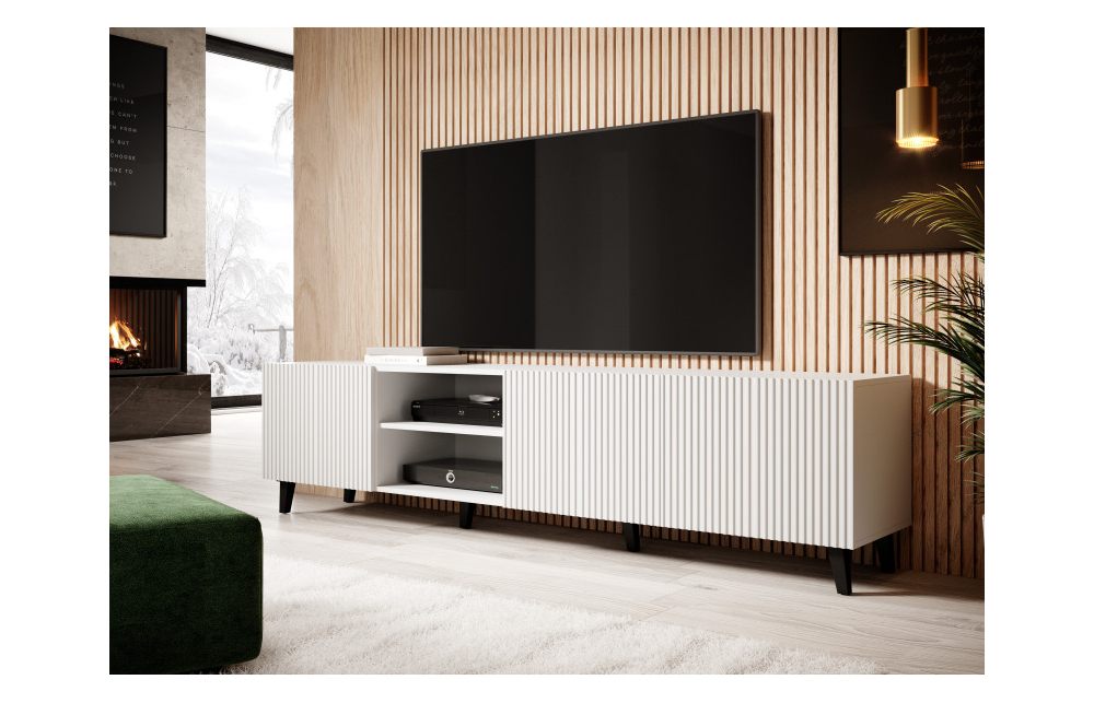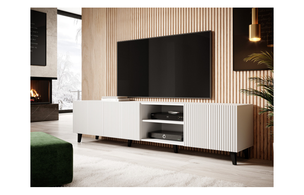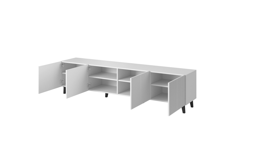 Размеры: h/w/d- 52/200/40 Корпус: ламинированная матовая ДСП 16 мм Фасады: Ламинированная МДФ плита, облицованная пленкой 16 мм, с видимыми фрезами Кромка: ABS Ножки: пластиковый материал Ручка: отсутствует. фасады выходят за пределы столешницы