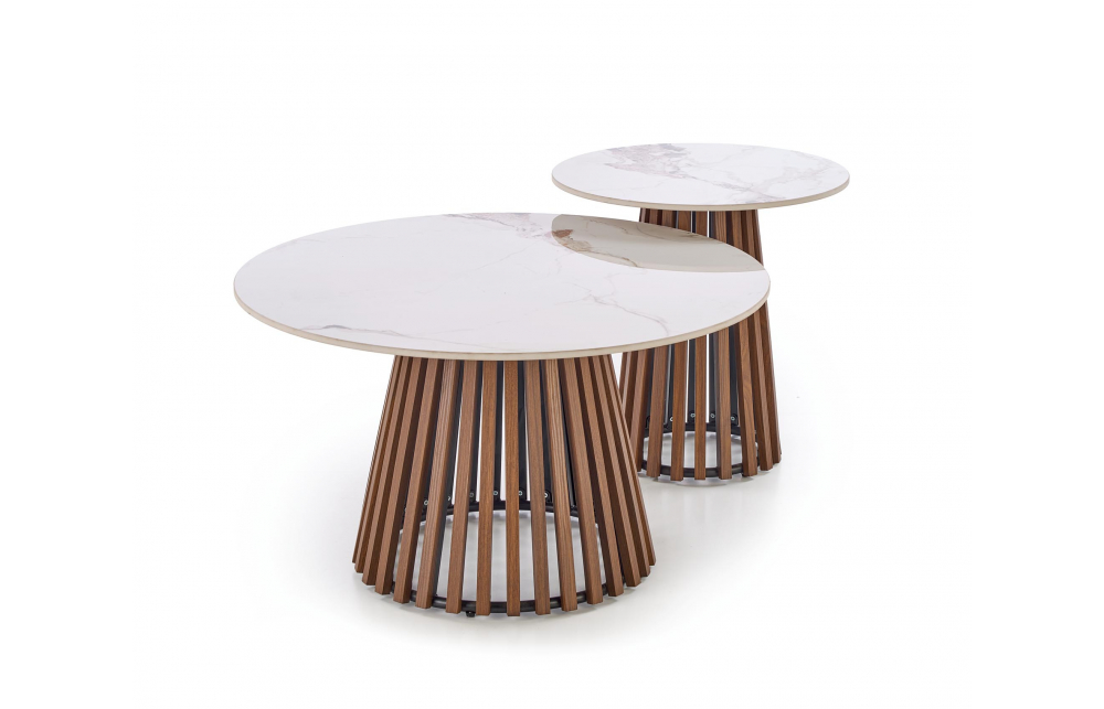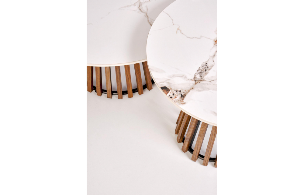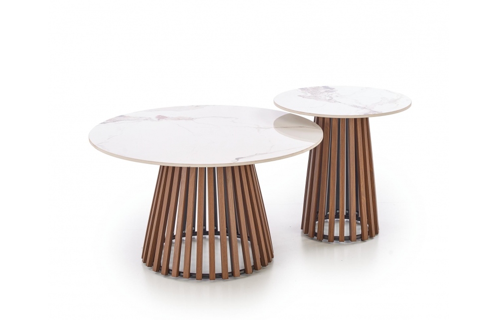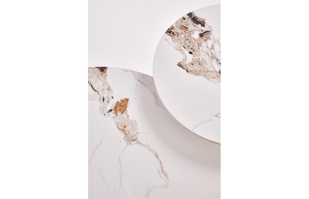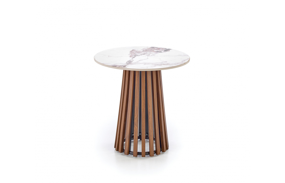 Размеры: fi50/51 см, материал: спеченный камень / ламинированный МДФ, цвет: орех / бежевый мрамор