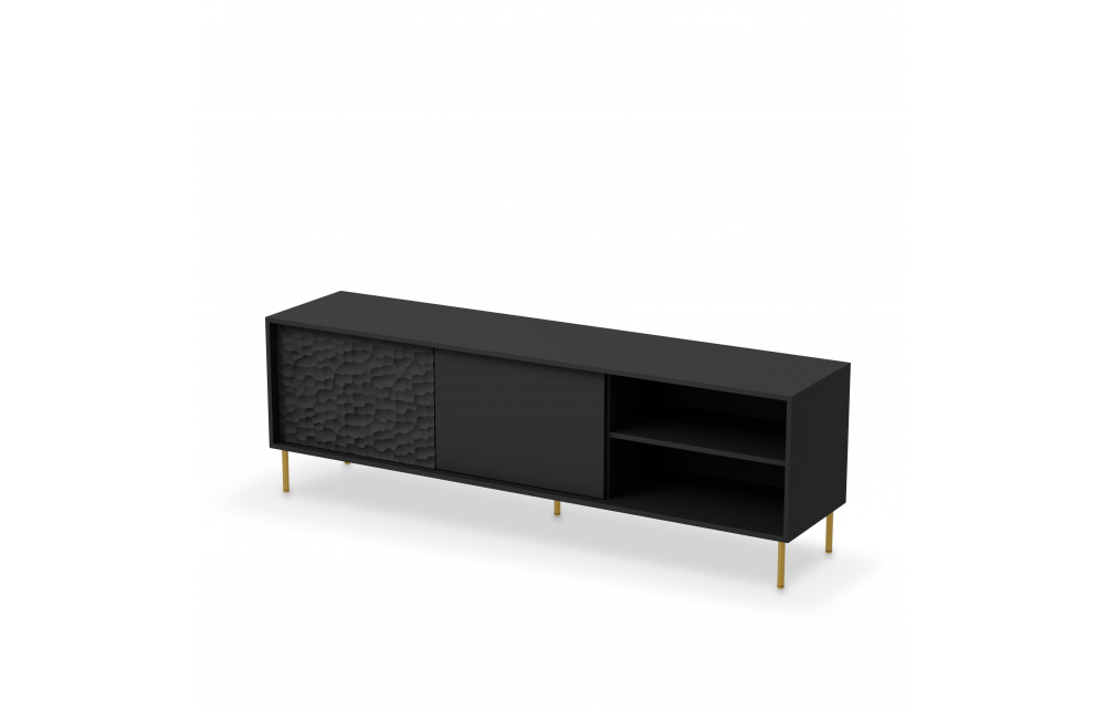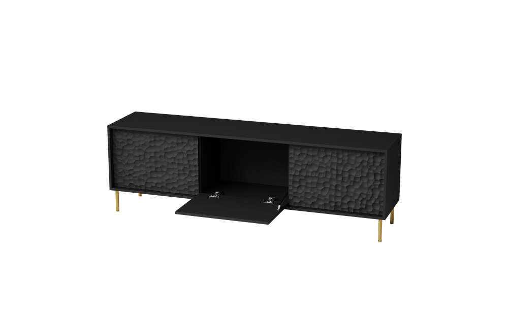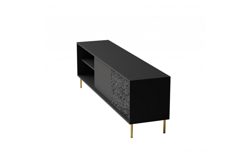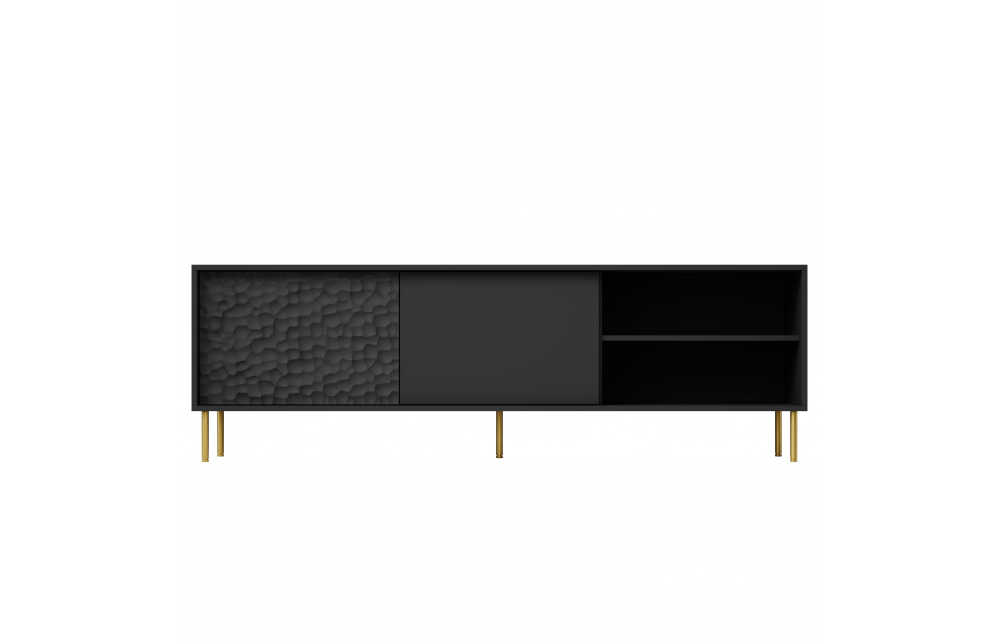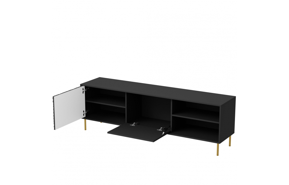 Подставка под телевизор, Размеры: 180/41/58 см, материал: ламинированная ДСП / ламинированная МДФ / ножки - металл, цвет: каркас - черный, ножки - золото