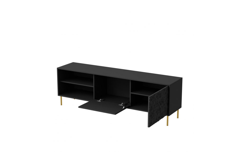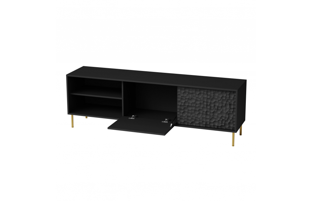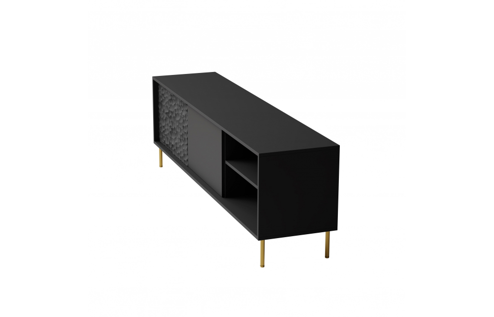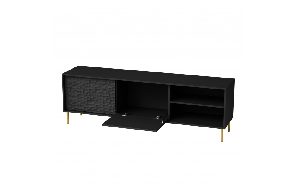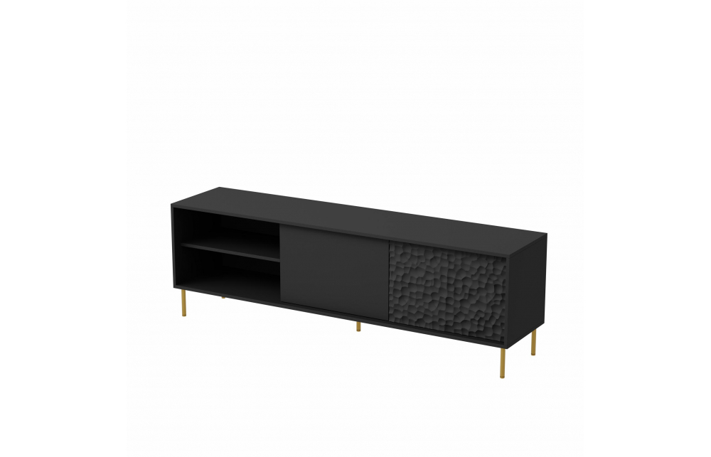 Подставка под телевизор, Размеры: 180/41/58 см, материал: ламинированная ДСП / ламинированная МДФ / ножки - металл, цвет: каркас - черный, ножки - золото