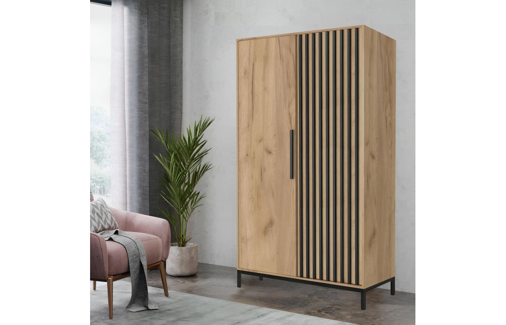 Размеры: 94/56/191 см; материал: ламинированная ДСП / полипропилен, цвет: дуб крафтовый / черный