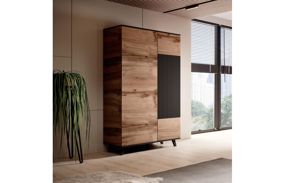 подвесная полка, Размеры: 90/55/182 см, материал: ламинированная МДФ / ламинированная ДСП / полипропилен, цвет: дуб вотан / черный