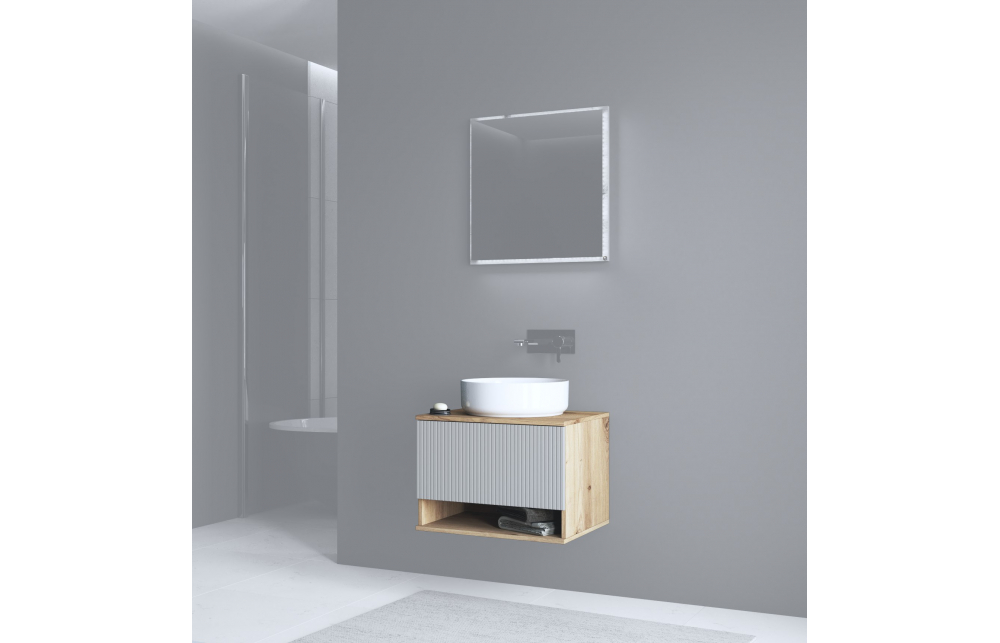 тумба под раковину, Размеры: 60/45/43 см, материал: корпус: ламинированная ДСП, фасад: ламинированная МДФ, вешалки и направляющие soft close, цвет: корпус - дуб ремесленный, фасад - кашемир матовый