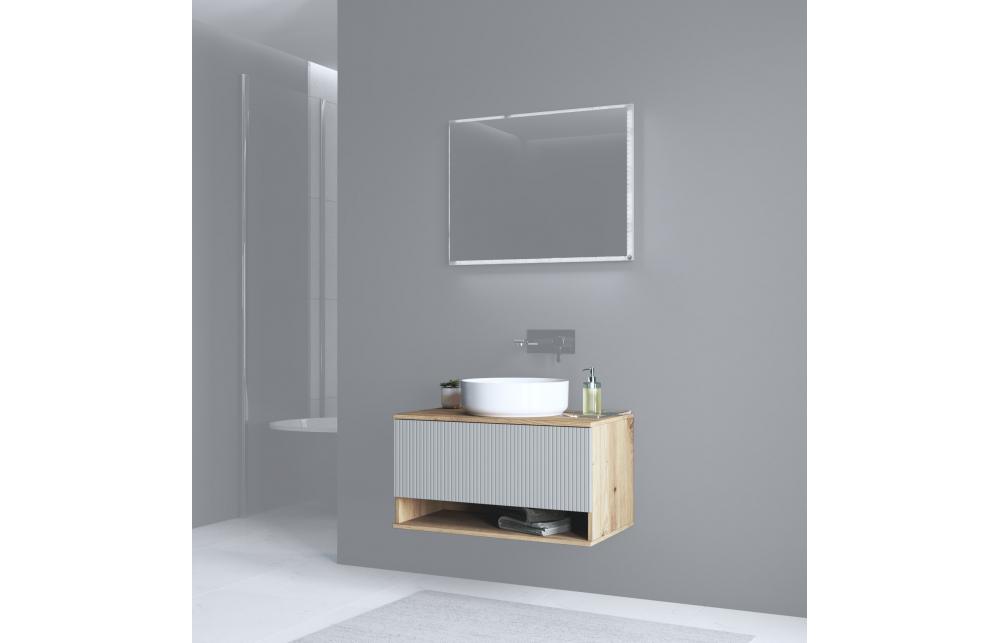 тумба под раковину, Размеры: 80/45/43 см, материал: корпус: ламинированная ДСП, фасад: ламинированная МДФ, вешалки и направляющие soft close, цвет: корпус - дуб ремесленный, фасад - кашемир матовый