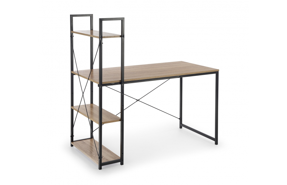 Размеры: 120/64/120 см, материал: ламинированная ДСП / сталь с порошковым покрытием, цвет: черный / дуб сонома, стеллаж может быть установлен с левой или правой стороны