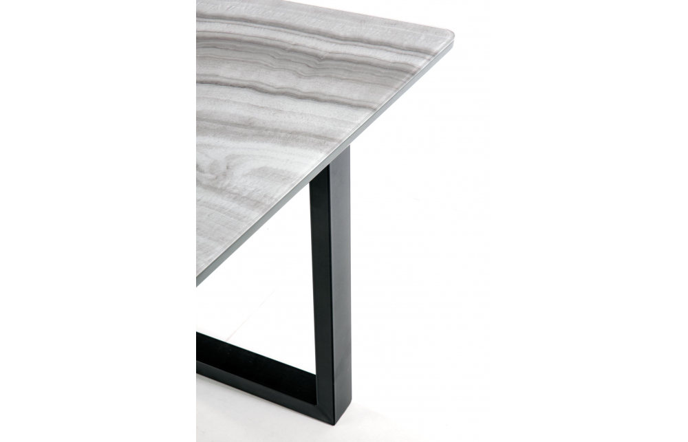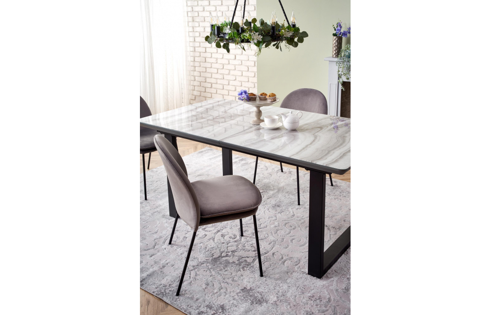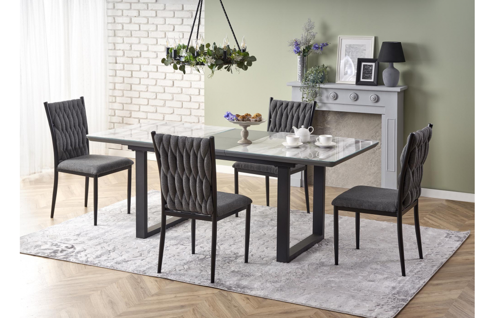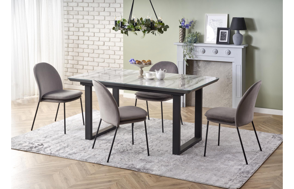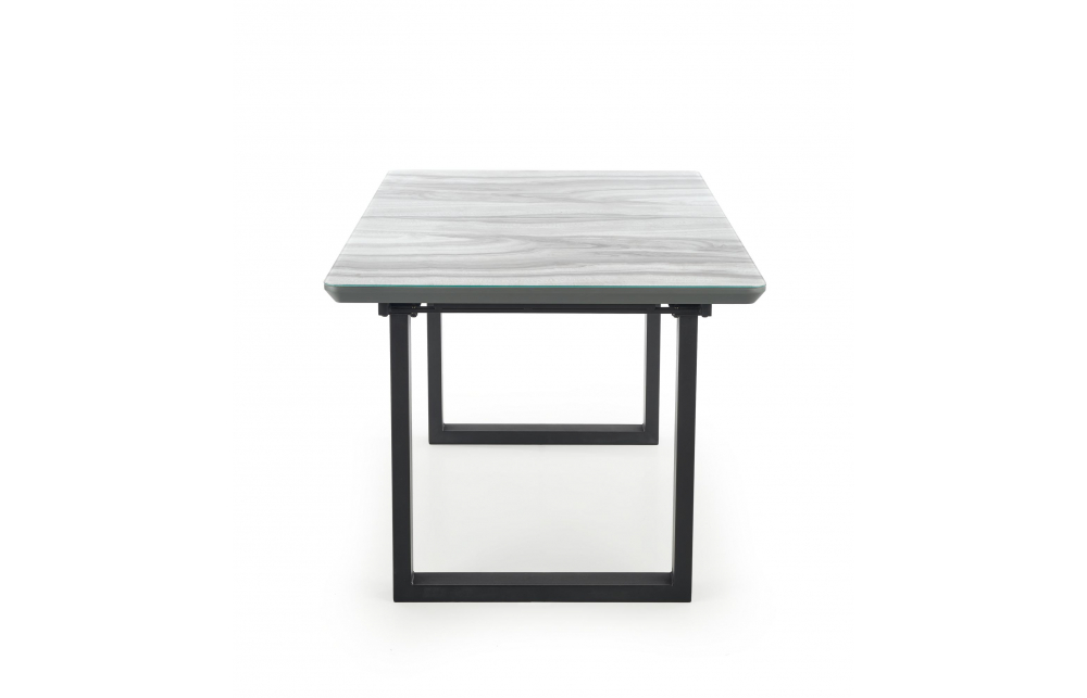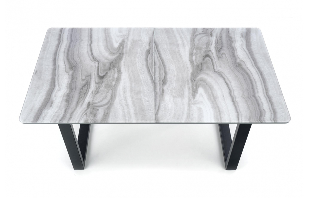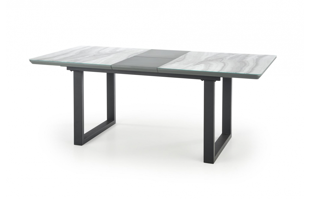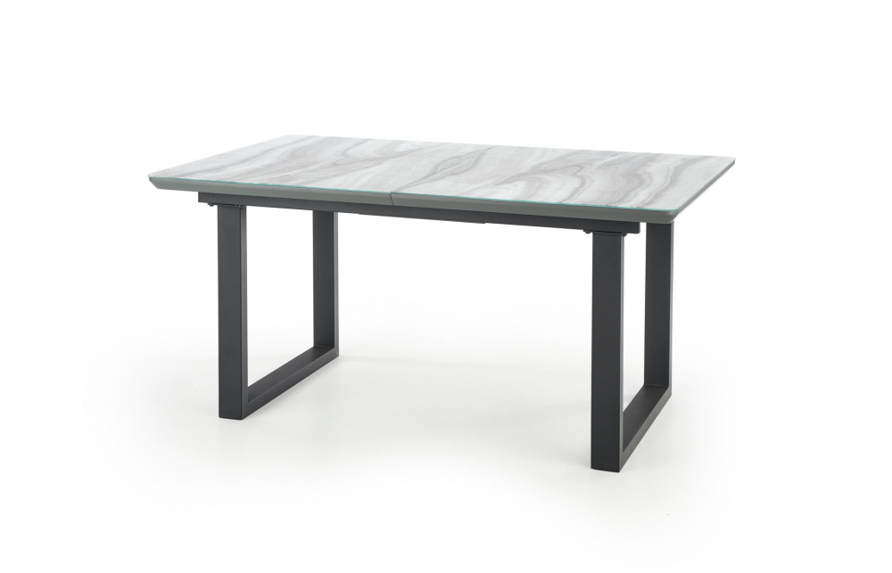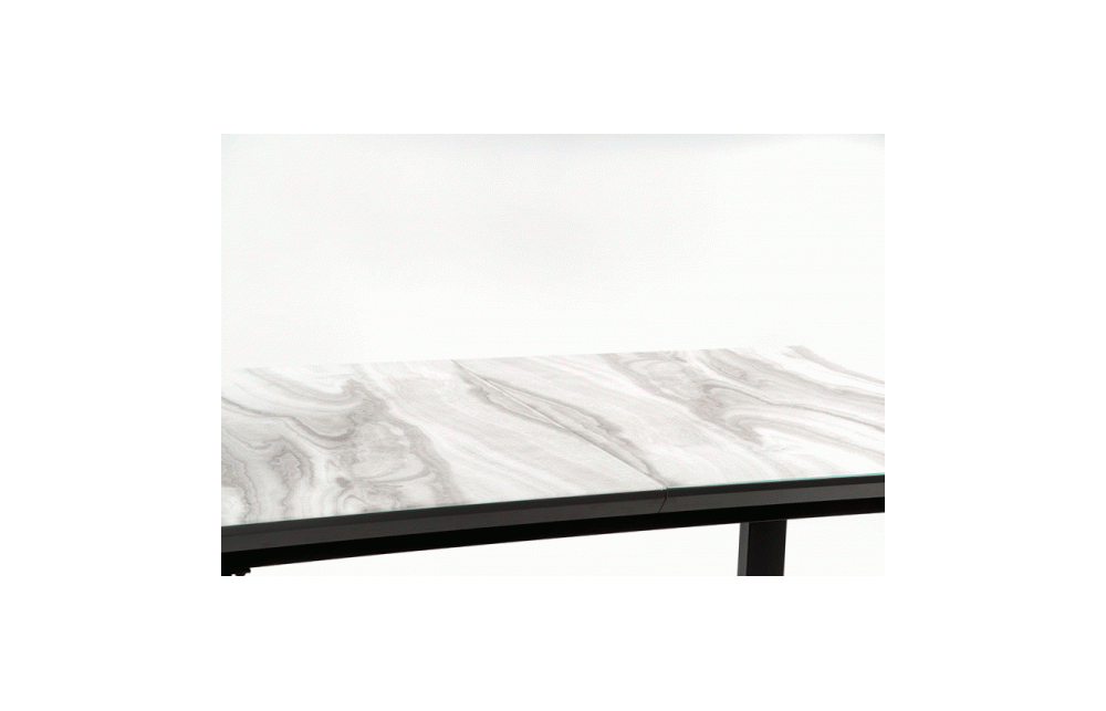 приставной стол, Размеры: 160-200/90/76см, материал: стекло / лакированный МДФ / сталь с порошковым покрытием, цвет: столешница - белый мрамор / серый, ножки - черный