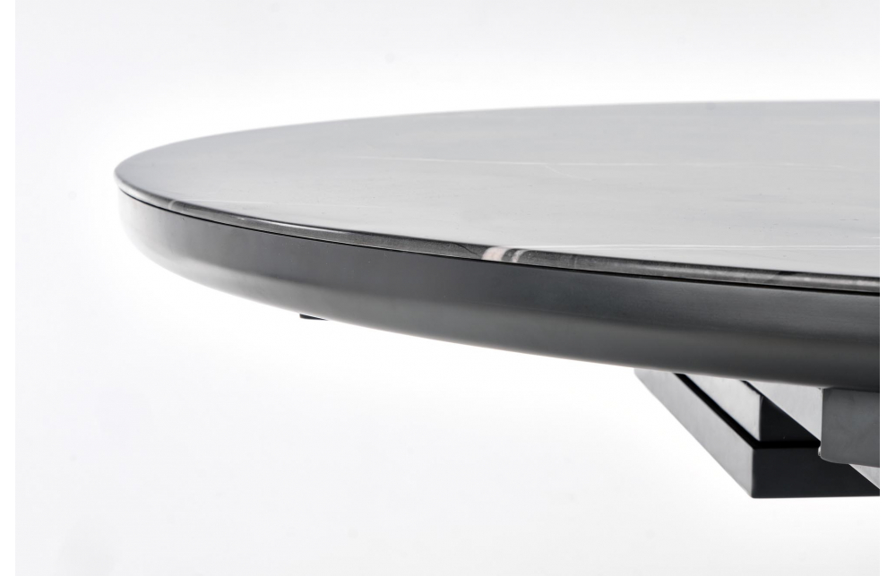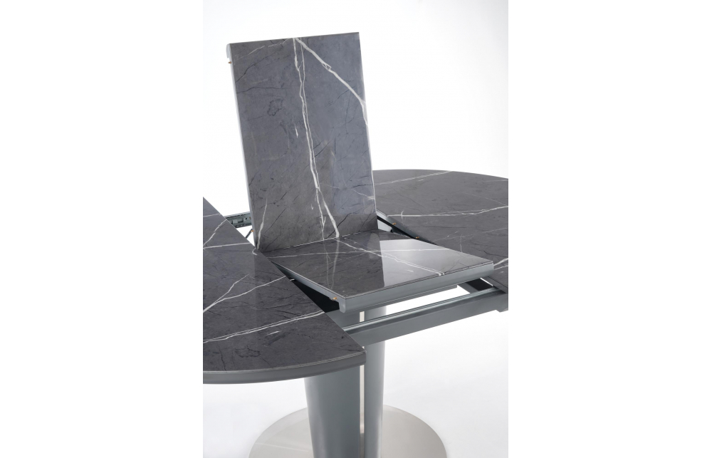 приставной стол, Размеры: 120-160/120/76 см, материал: стекло / лакированный МДФ / нержавеющая сталь, цвет: столешница - серый мрамор, ножки - темно-серый
