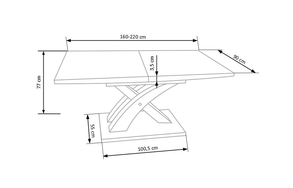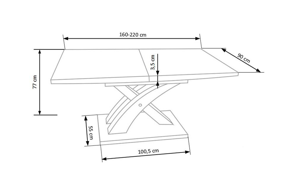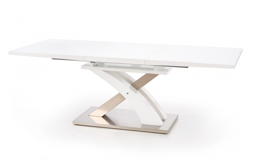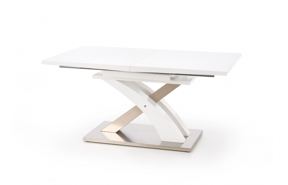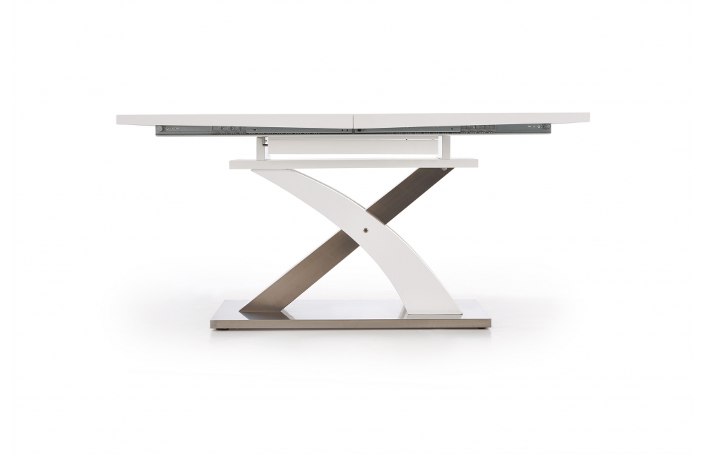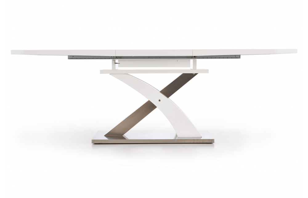 Размеры раздвижного стола: 160÷220/90/75 см, материал: лакированный МДФ / нержавеющая сталь, цвет: белый