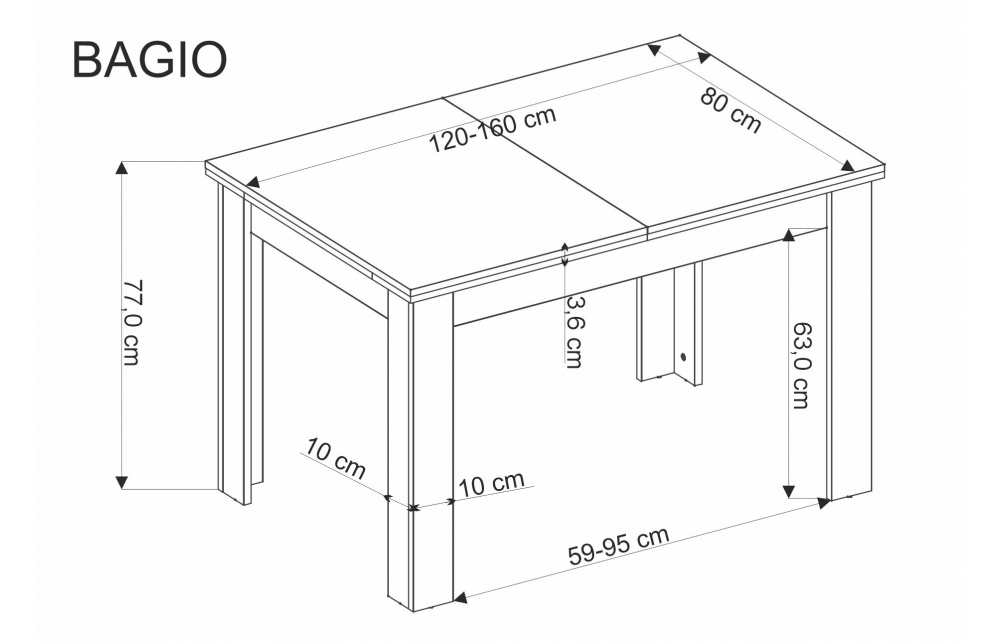 размер: 120-160/80/77/95 см; приставной стол, материал: ламинированная ДСП, цвет: столешница - дуб ремесленный, ножки - дуб ремесленный
