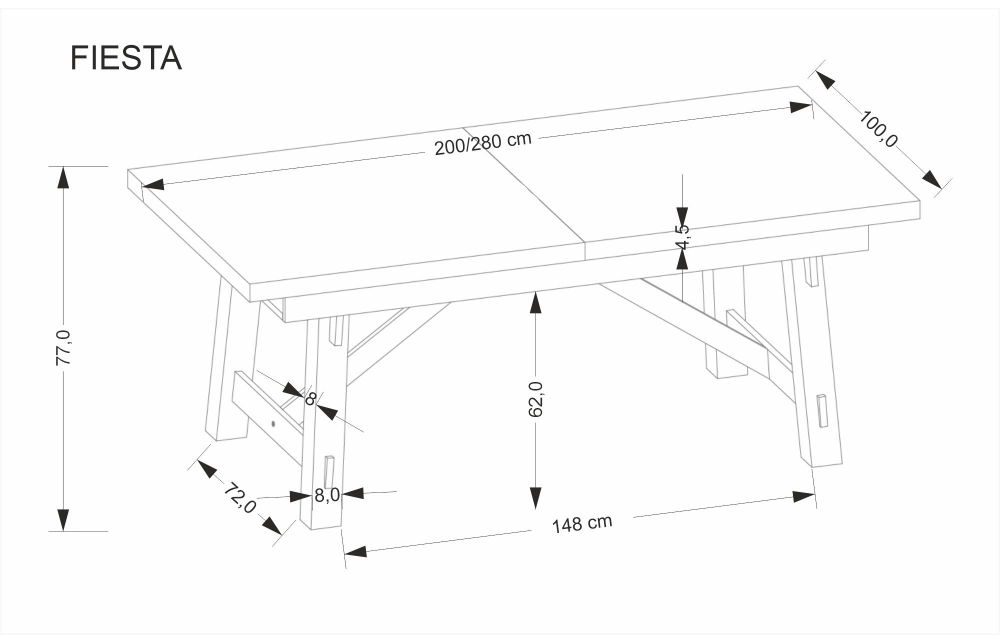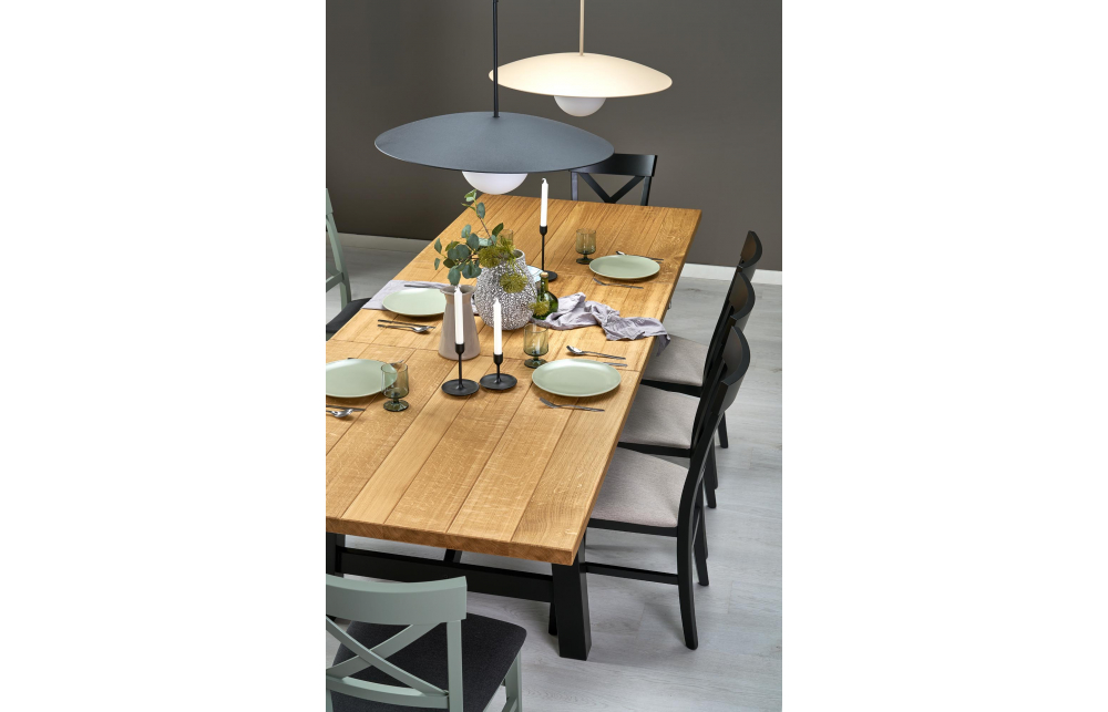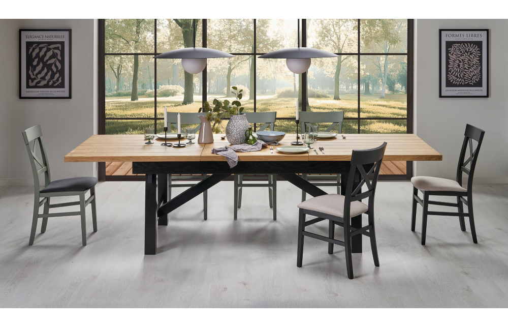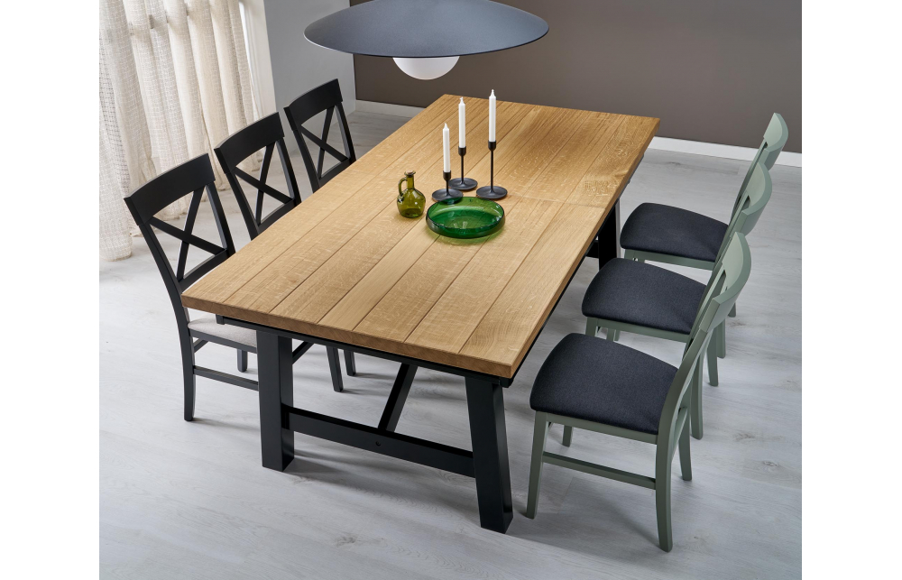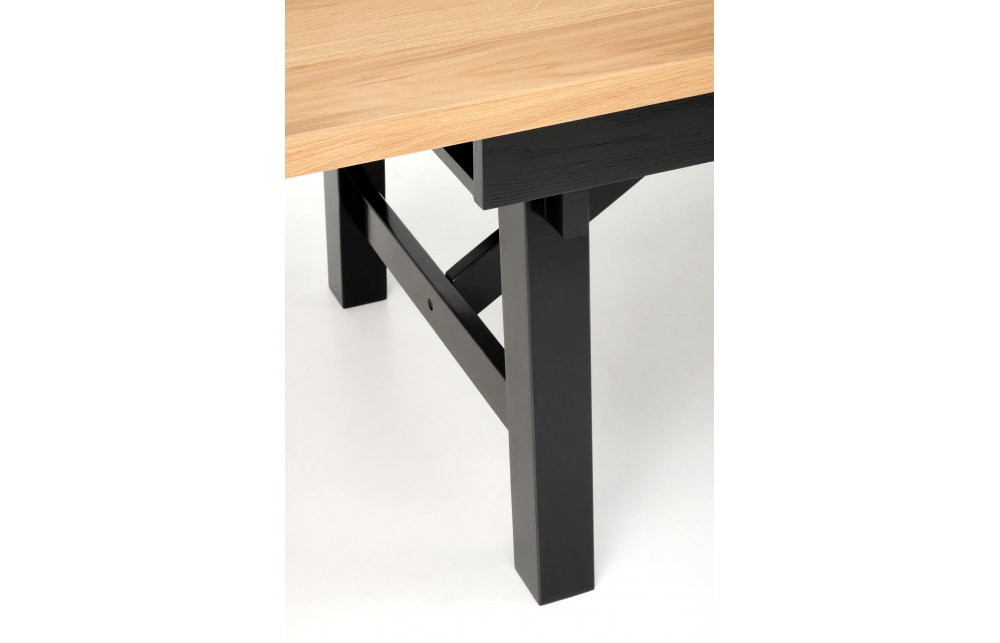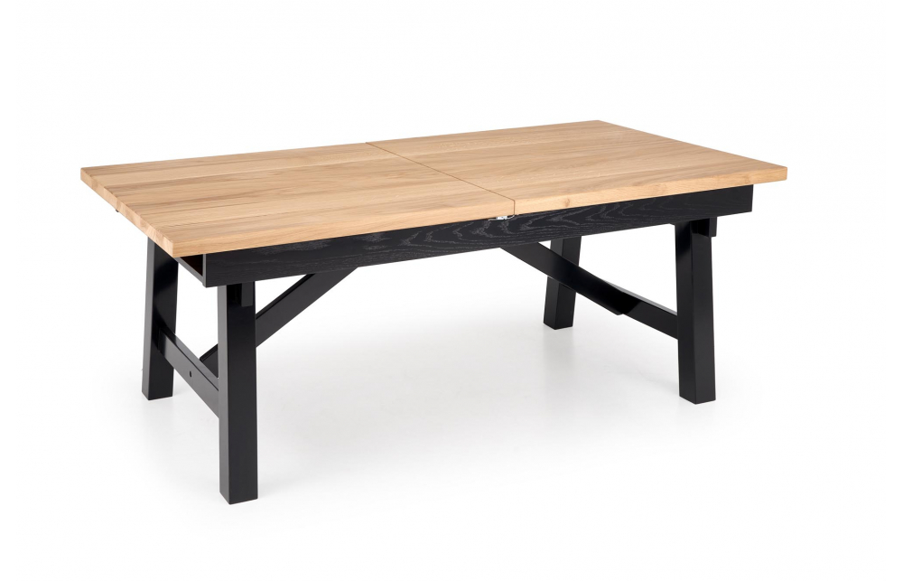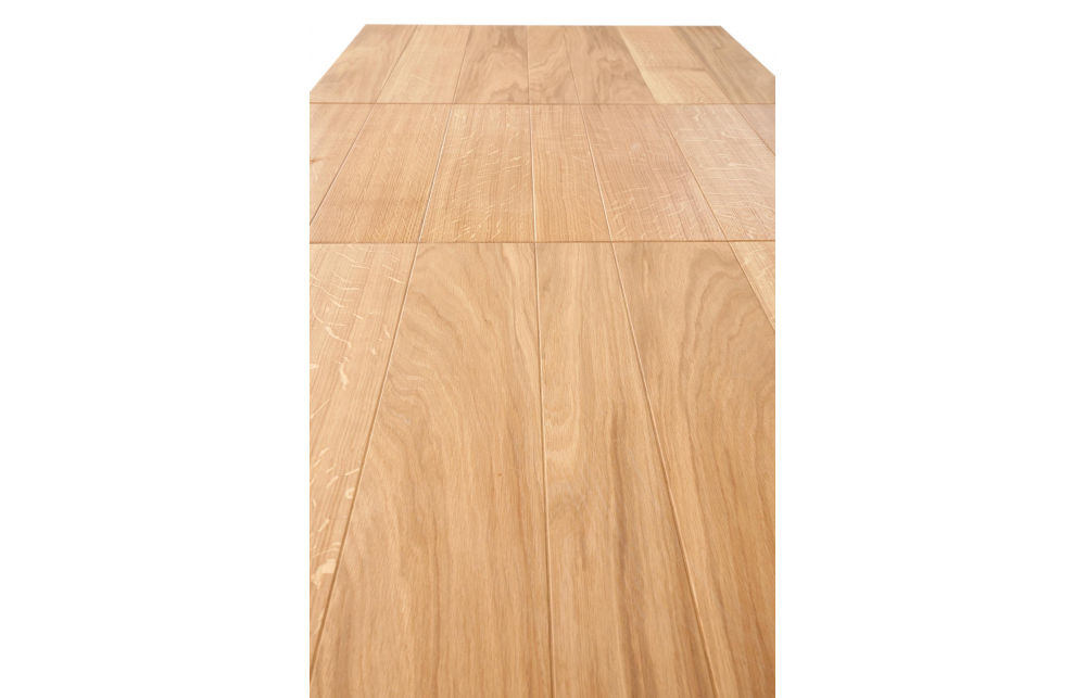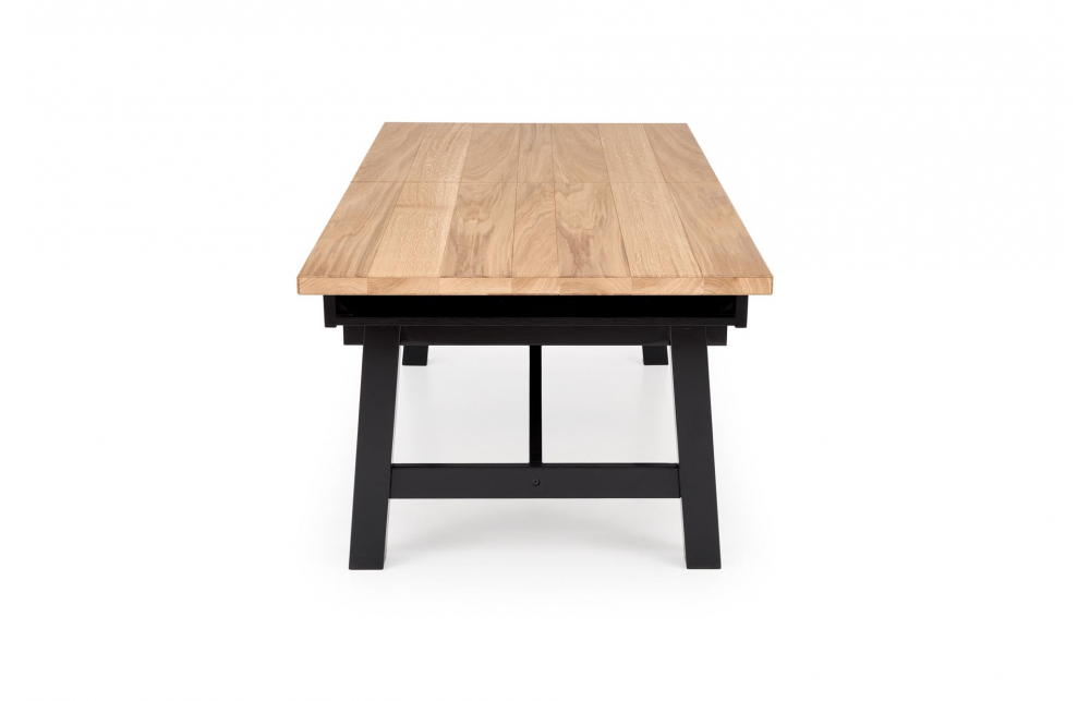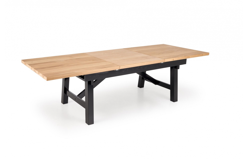 приставной стол, Размеры: 200-280/100/77 см, материал: столешница - плита МДФ и дубовые планки, по краям - массив дерева, ножки - массив бука, цвет: столешница - натуральный дуб, ножки - черный