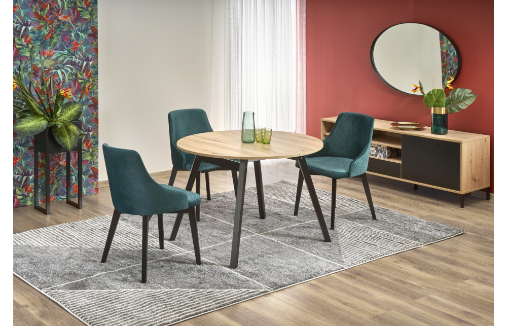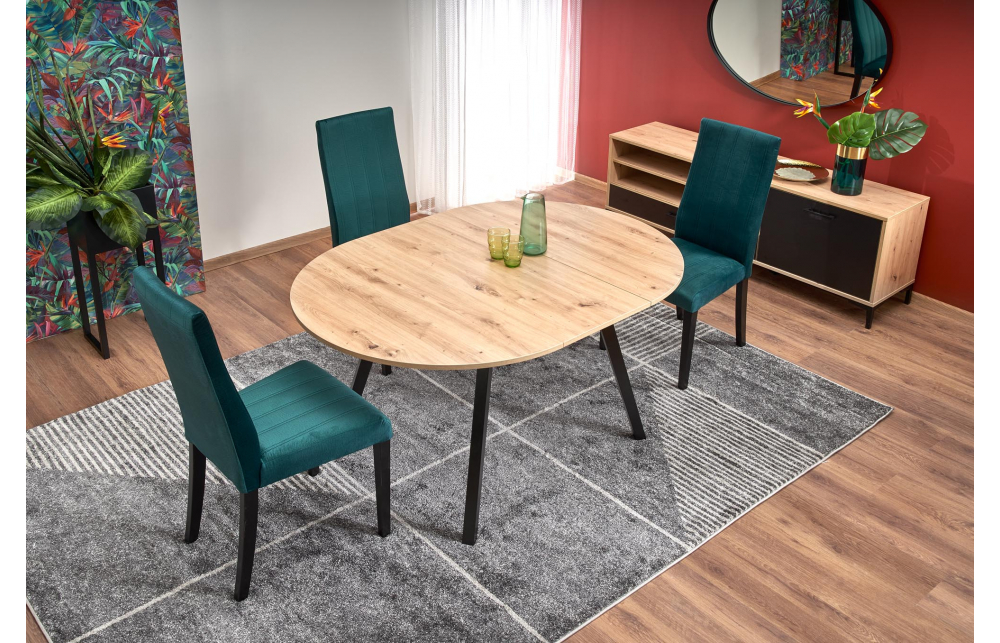 Размеры: 102-142/102/73 см, приставной стол, материал: ламинированная ДСП / массив бука, цвет: столешница - дуб ремесленный, ножки - черные
