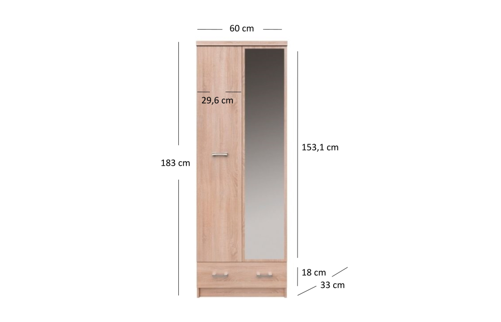 Шкаф с зеркалом TOP MIX 2d1s/60