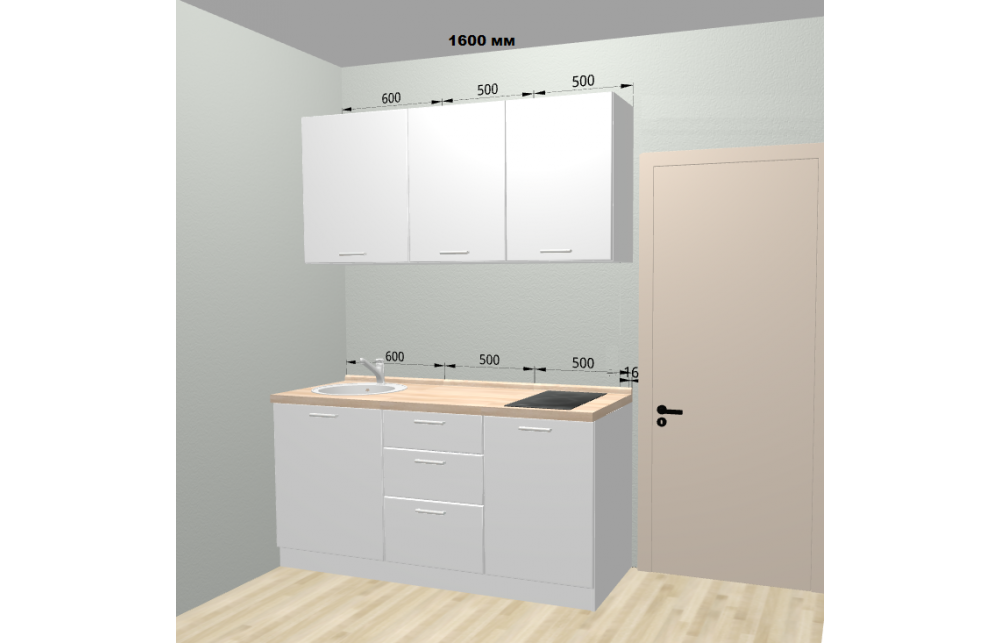 Размеры нижних шкафов: высота - 860 мм, глубина - 540 мм, 1 полка
