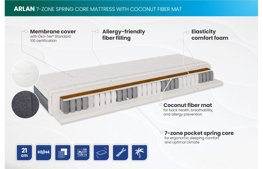 • Тип матраса: 7-зональный независимый пружинный блок Pocket .